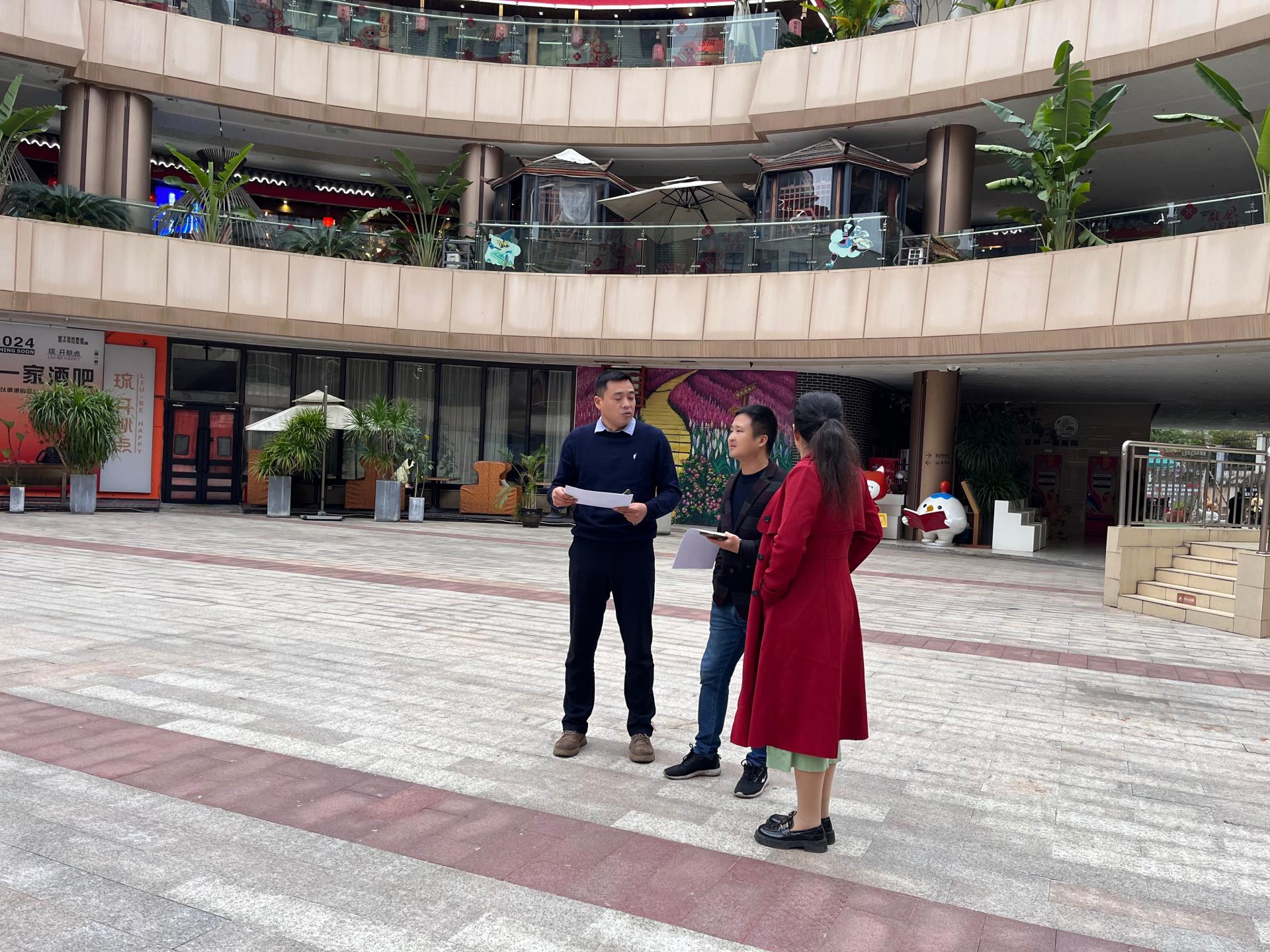 工作人员在金菊邻家广场接待意向商户