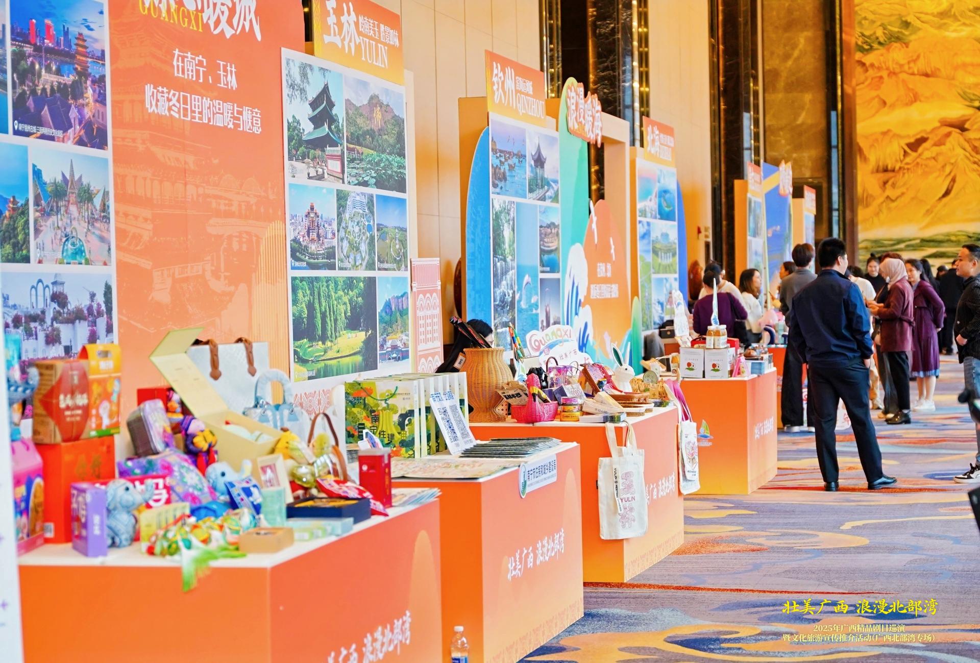 11月6日至10日,万搏在线(中国)唯一官方网站、南宁文旅集团先后参加了“壮美广西 浪漫北部湾”广西北部湾专场、西宁冬春文旅“赏非遗”系列活动启动仪式,以及银川、兰州两场“浪漫滨海 秀美南疆”专题推介会。集团旗下特色产品——五象山庄壮锦小象,以及银河大酒店“邕城凉茶”“古城老友”预包装老友粉、鸡仔饼、邕城小桃酥等集中亮相,成为推介会上展现南宁城市韵味与文化活力的重要载体。