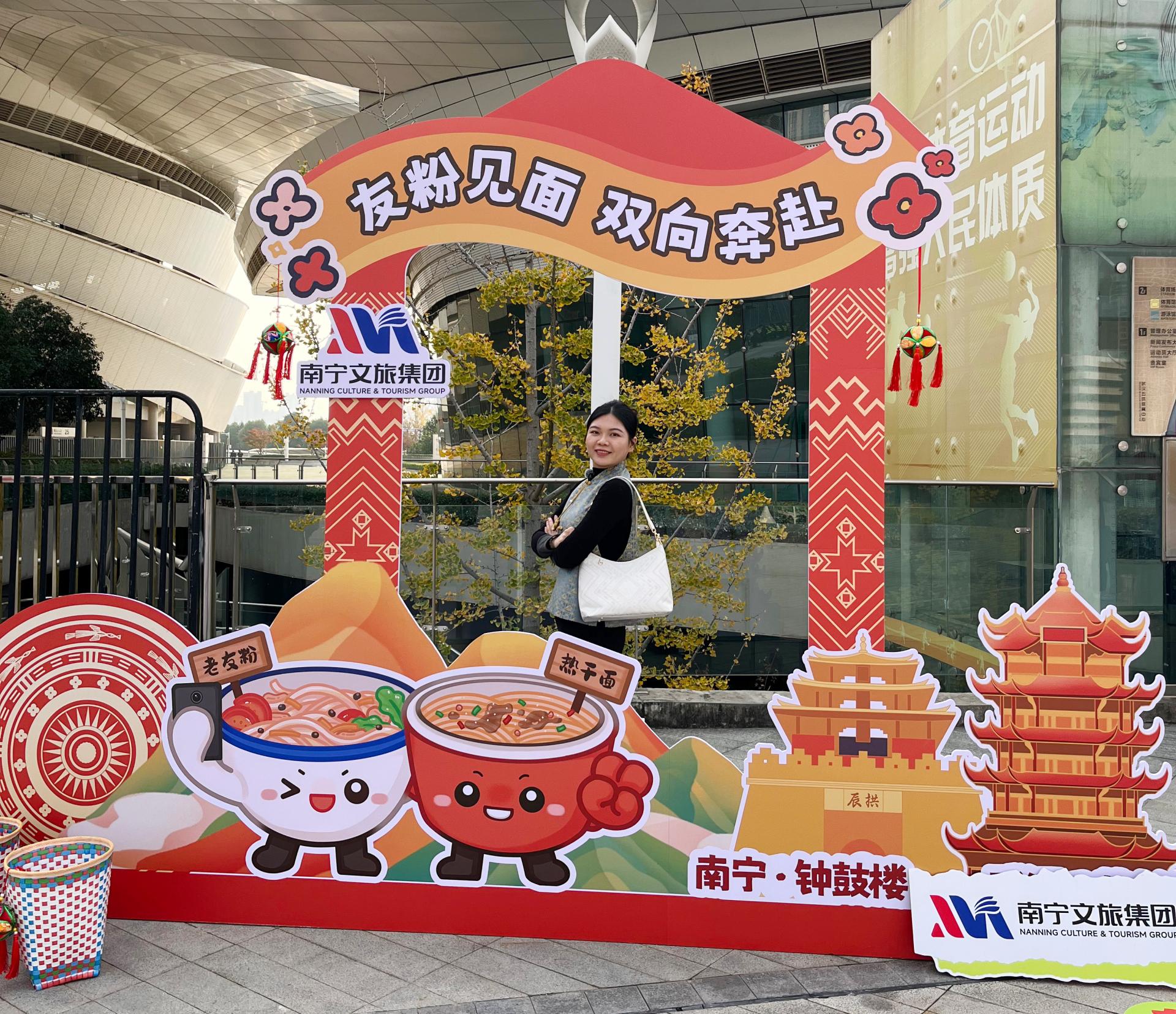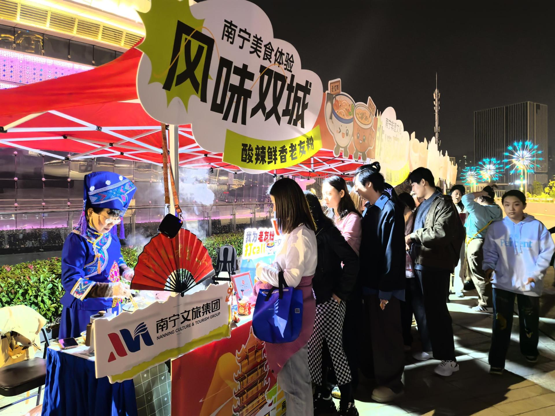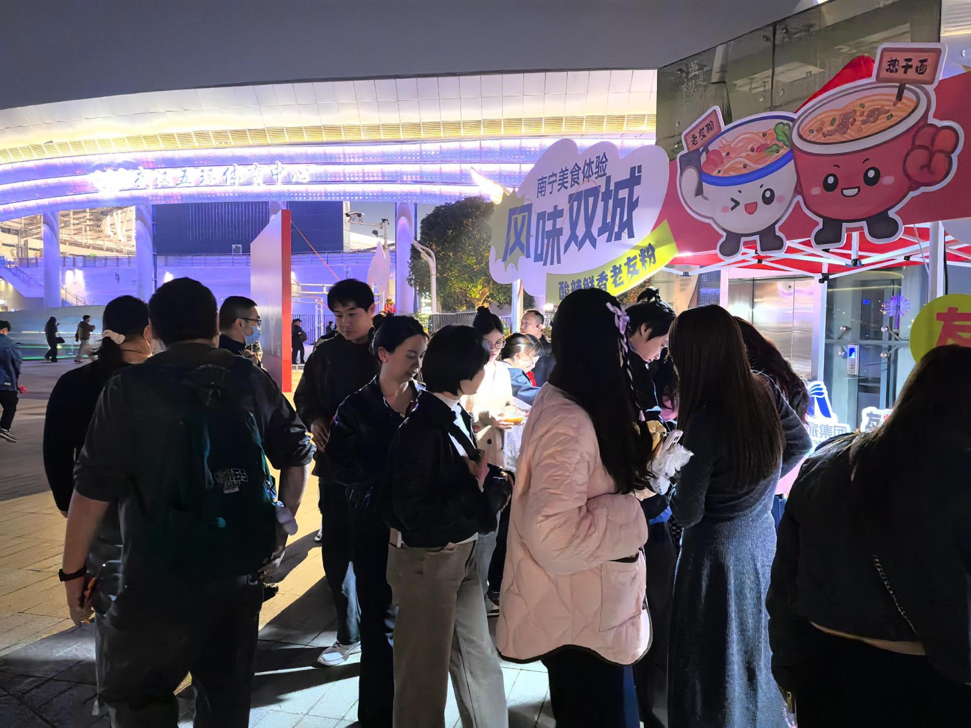 文化输出层面,南宁文旅集团在演唱会场外精心打造南宁文化主题展区,将旗下银河公司南宁老友粉、鸡仔饼、五象山庄壮锦小象等特色IP产品集中展示,以"演艺+市集"的创新模式,让南宁特色产业链资源走进武汉市场。更联合南宁市文广旅局发起"南宁有礼"赠礼活动,精选南宁特色产品赠予武汉歌迷,以“小礼物”传递“大文化”,实现城市文化的精准传播与情感共鸣。
