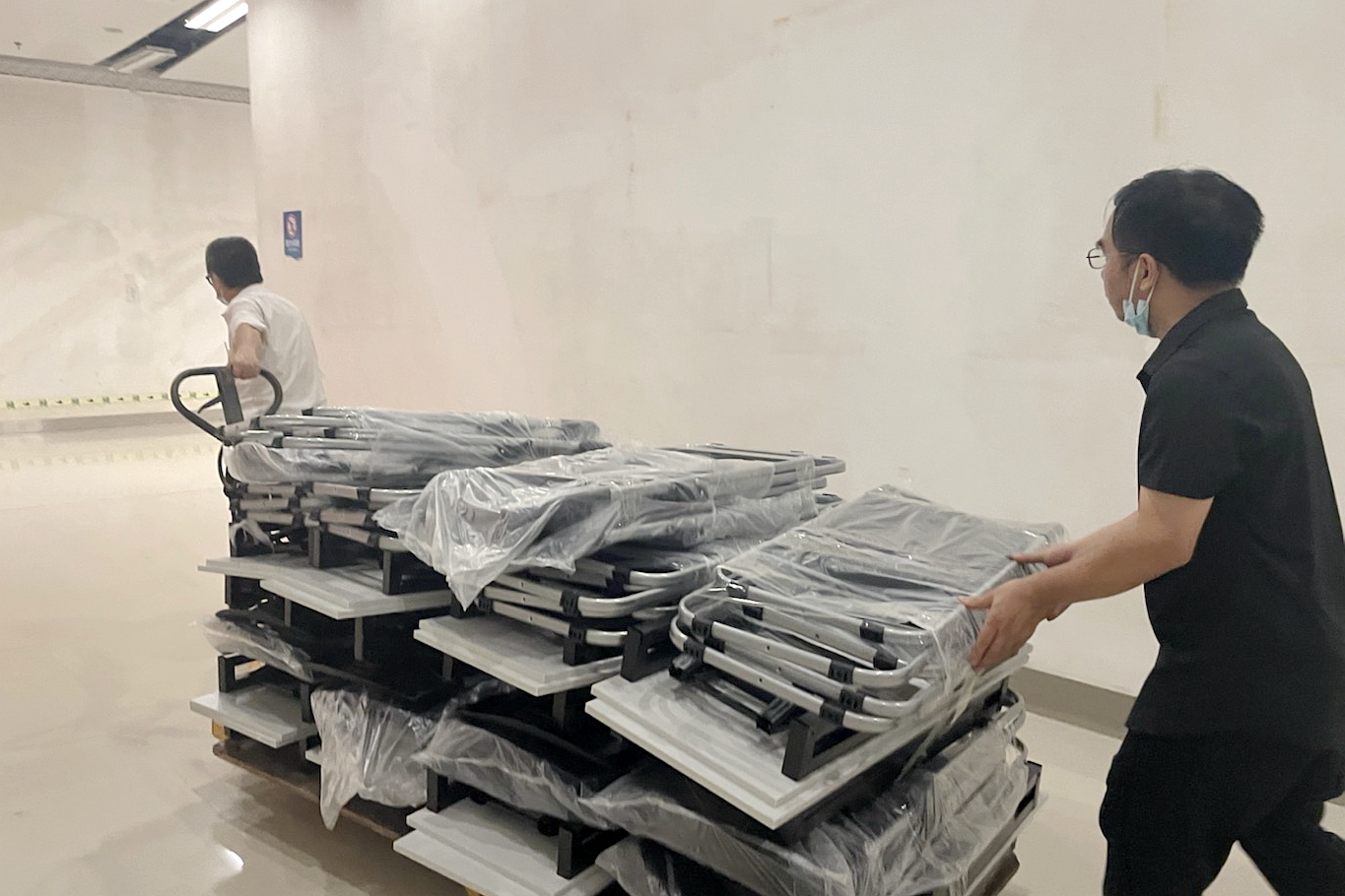 一通电话,是紧急集结令。“当时我还在处理工作,说是紧急集合,我就立马赶过来,”快要退休的万搏在线(中国)唯一官方网站老党员蔡雄莲回忆说,大概是1小时左右,所有人员集结完毕,在1530核酸采样圈物资总仓,开始配置桌椅、沙袋、帐篷等各类物资。