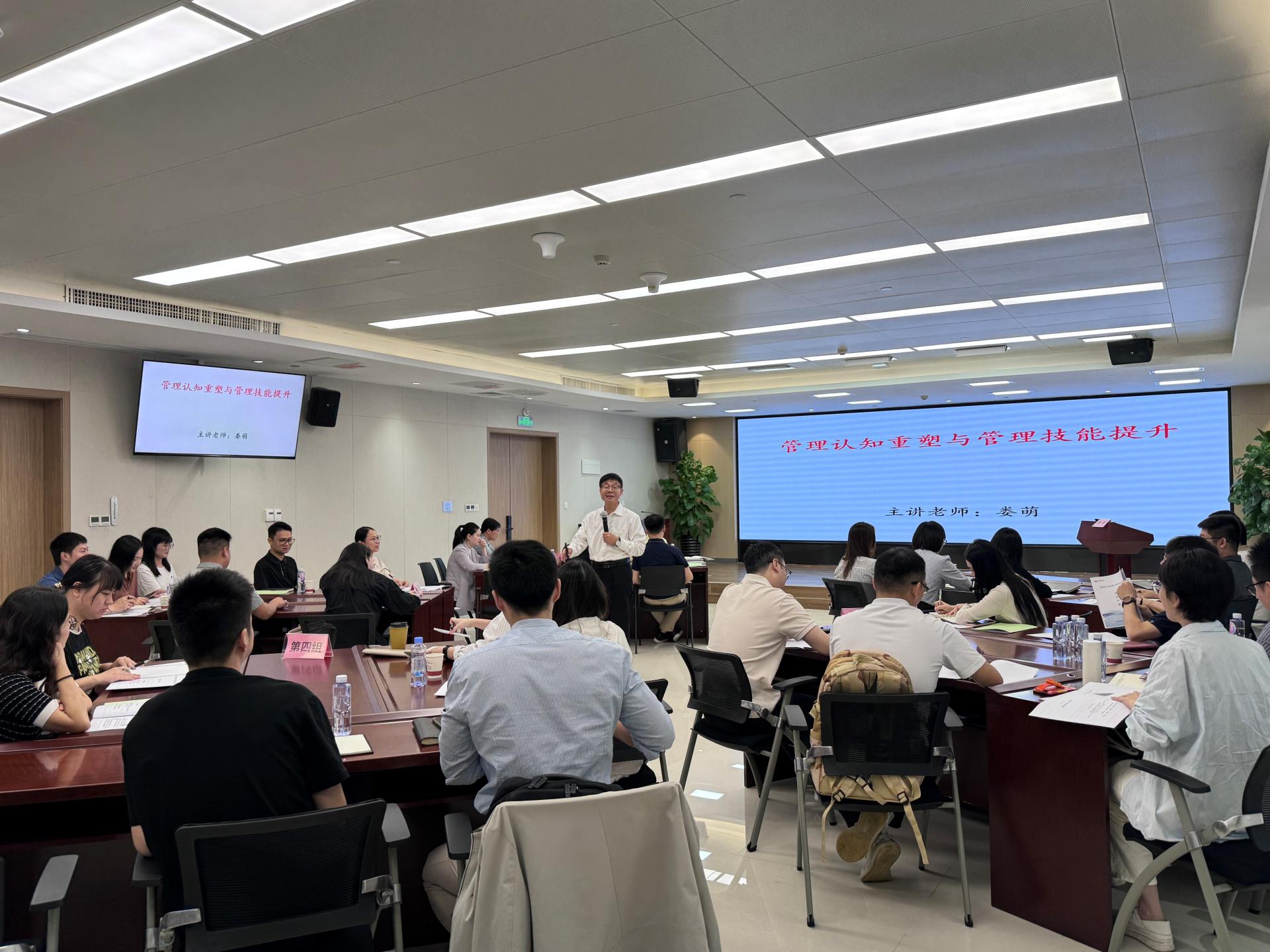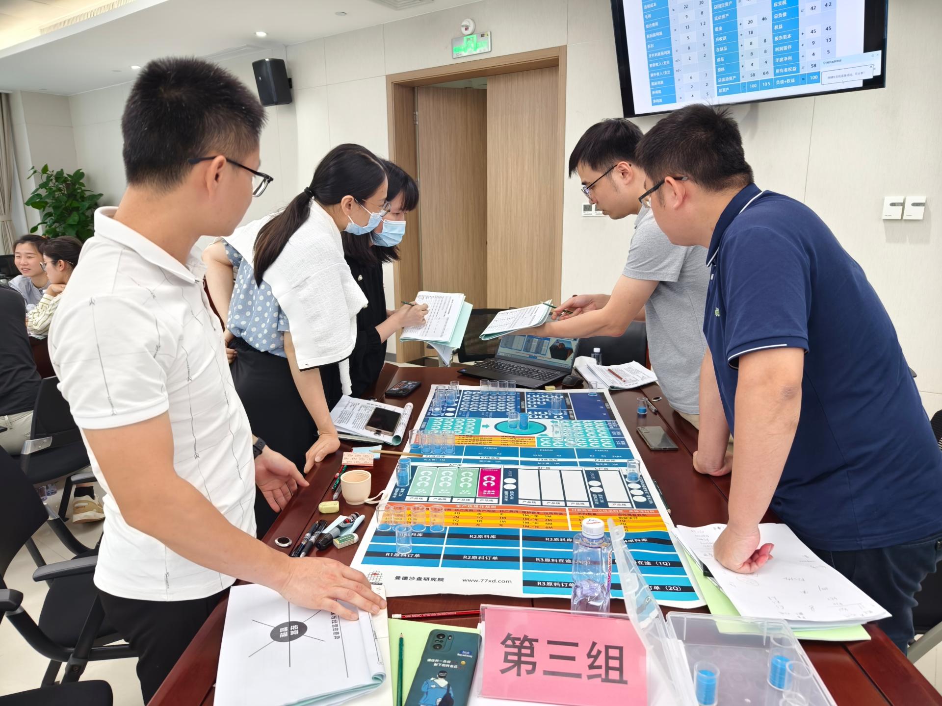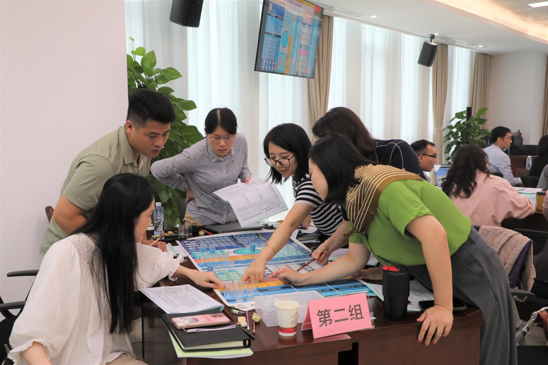 第一期培训课程以企业经营管理为主题。在9日当天《管理者的“X项修炼”——管理者管理认知和技能破局之道》课程中,娄萌教授从管理认知重塑、管理自我效能提升、管理技能三个方向出发介绍了管理者的角色认知和能力提升方向,博古通今、金句频出,通过生动精彩的讲授引发了全体学员的强烈共鸣。5月10日《步步为赢——企业经营管理敏锐度沙盘实训》课程中,李俊老师以数智系统和沙盘模型的方式模拟企业在3年中真实的经营环境,学员们分成六组以六家独立的公司模拟运营企业决策、市场竞争、生产制造、财务管理等环节,让学员能够跳出自己所在的岗位看到企业经营管理的各个模块。学员们在体验中洞察“经营”,在实战中学习“管理”,一天下来,各个“总经理”“财务总监”“运营总监”们虽然烧脑却大呼“过瘾”!