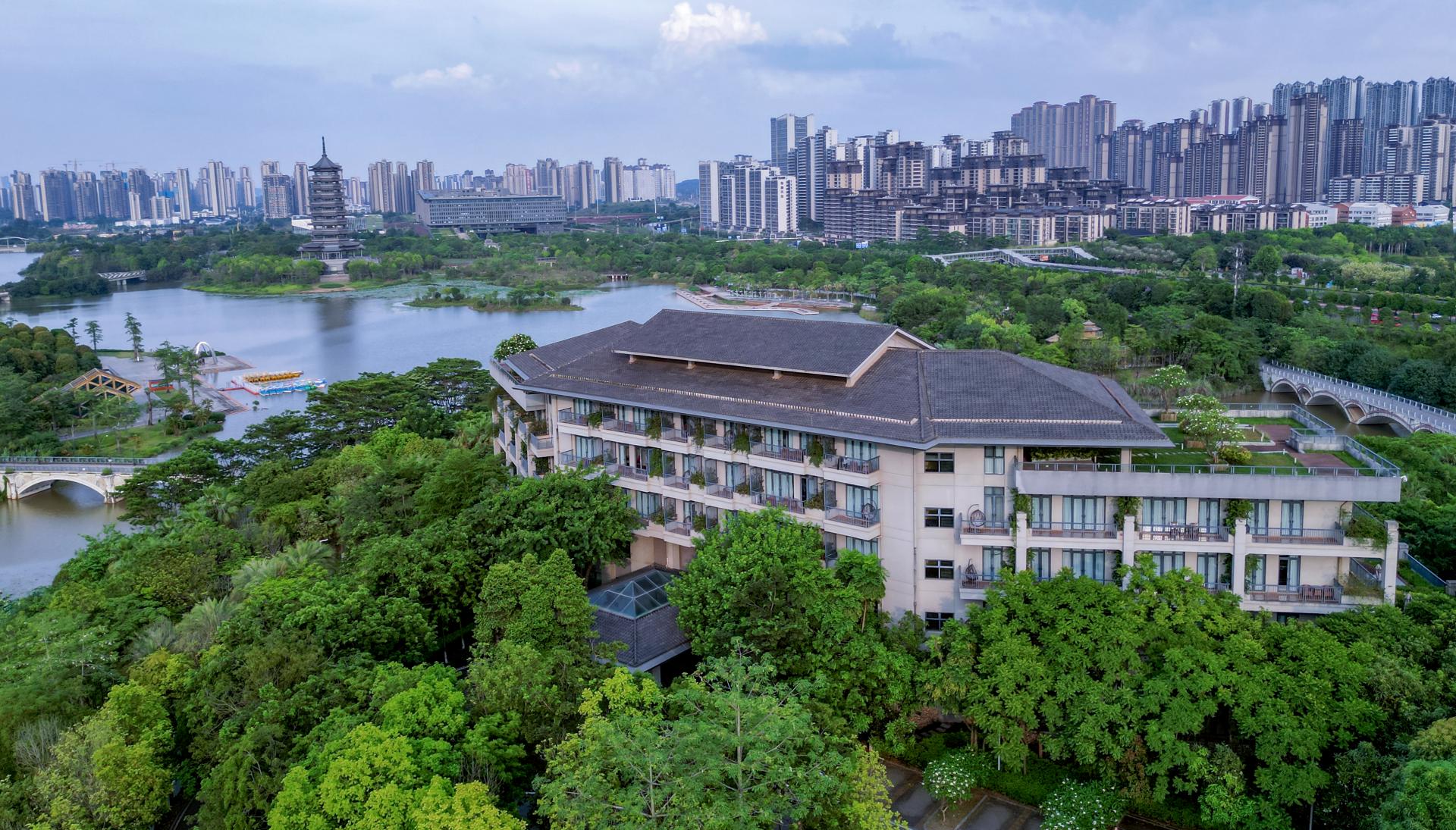 五象山庄位于南宁市良庆区秋月路9号,紧邻风景秀丽的五象湖公园,占地面积达200余亩,建筑面积约5万平方米。山庄内园林式建筑群交相辉映,自然环境得天独厚,林木郁葱,鸟语花香,波光潋滟,曲径通幽,宛如世外桃源。这里离尘不离城,不仅是一处远离喧嚣的宁静之地,更是集文化旅游、休闲度假、聚会娱乐为一体的商务园林酒店。