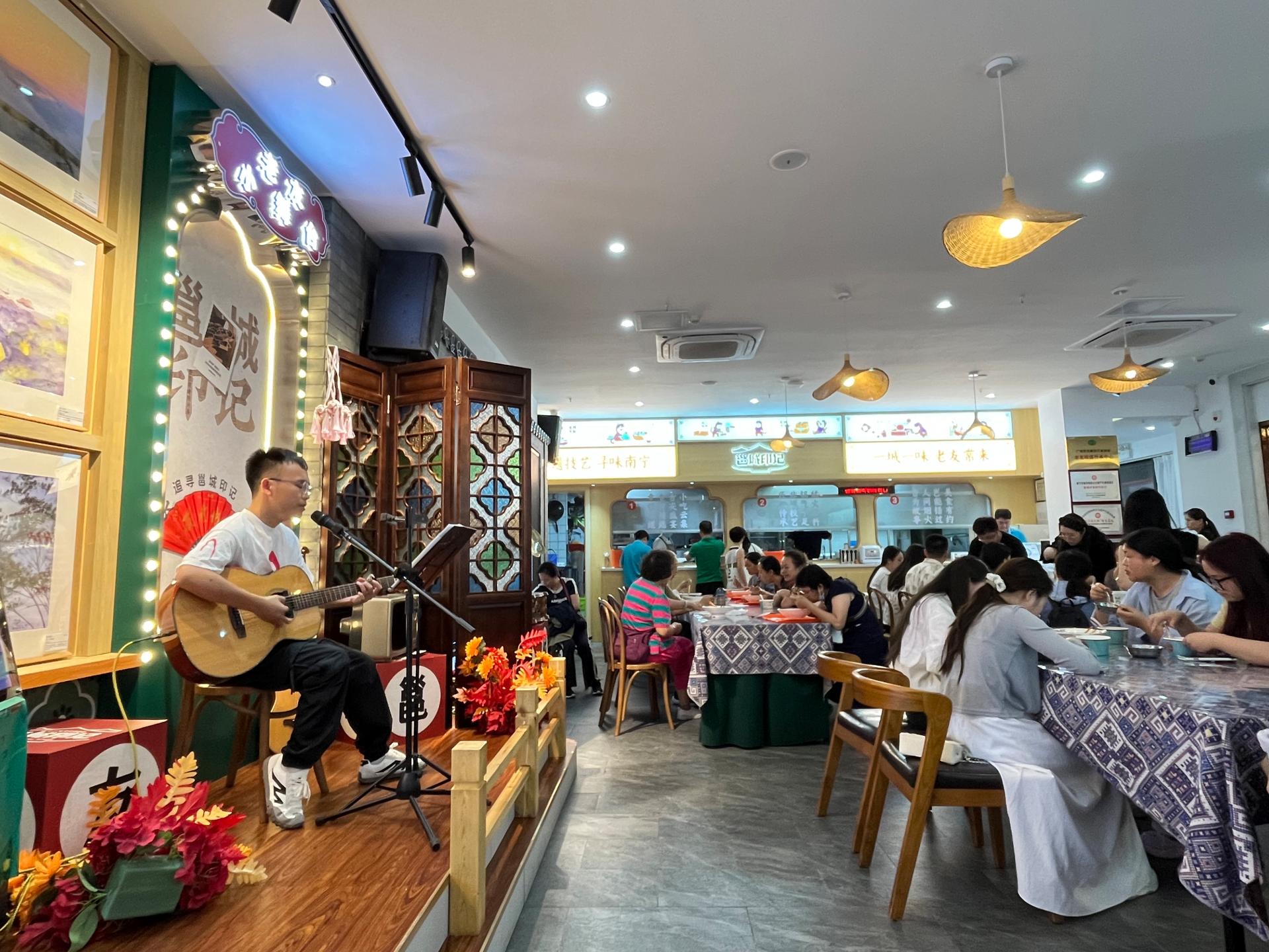 南宁文旅集团始终探索“非遗活态传承+多元场景融合”的发展路径,携邕城印记积极联动大型文化活动,通过精准对接流量、深化文化体验,实现了非遗品牌影响力与文旅消费的双向提升。在“2024年小吃文化进街区暨首届广西-东盟小吃大赛”活动中作为分会场,展示多道以“南宁老友味道”为主打的南宁名小吃供市民品鉴,对弘扬广西小吃文化,强化与东盟各国特色美食的融合交流,打造广西特色小吃品牌起到积极推动作用;周杰伦演唱会期间,作为官方周边“周同学”的集赞发放地,成功吸引大量年轻客群到店互动;刀郎演唱会期间,吸引众多外地歌迷慕名到店品尝南宁老友粉等特色小吃,有效实现了从“演出流量”到“消费留量”的转化。通过将非遗美食、非遗技艺融入各类衍生场景,邕城印记为非遗活态传承开辟了“年轻化、场景化”的新路径,更进一步夯实了广西非遗品牌的市场竞争力与文化影响力。