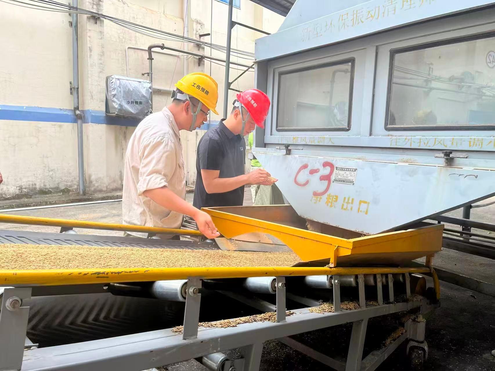 为抢抓夏粮入库黄金期,储备粮公司全力打好“效率+质量”组合拳,推行“早开门、晚收秤”服务模式,实行“随到随收”,延长每天入库作业时间,确保来粮不压车、不过夜。面对夏季高温,粮库工作人员顶着烈日坚守一线直至当日最后一车粮顺利入库,设备维修团队更是24小时待命,随时处置突发故障,保障入库“不断档”。为进一步提高入库效率,储备粮公司根据来粮量动态调整入库作业窗口数量,开设6个入库作业口同步作业,单日最高入库量突破800吨;在确保入库效率的同时,公司在质量监控环节也丝毫不松懈,严格做到“每车定检”“入库过程随机抽检”等质量管控措施。此外,储备粮公司在今年首次执行入库前对每一车稻谷进行粮温监测,收集粮温数据,不仅有效甄别阻隔高温粮入库,也为新粮入库后实行通风降温提供有力科学依据。经监测,因粮食质量不达标退货共164车次,有效实现入库粮食自主检测100%合格。