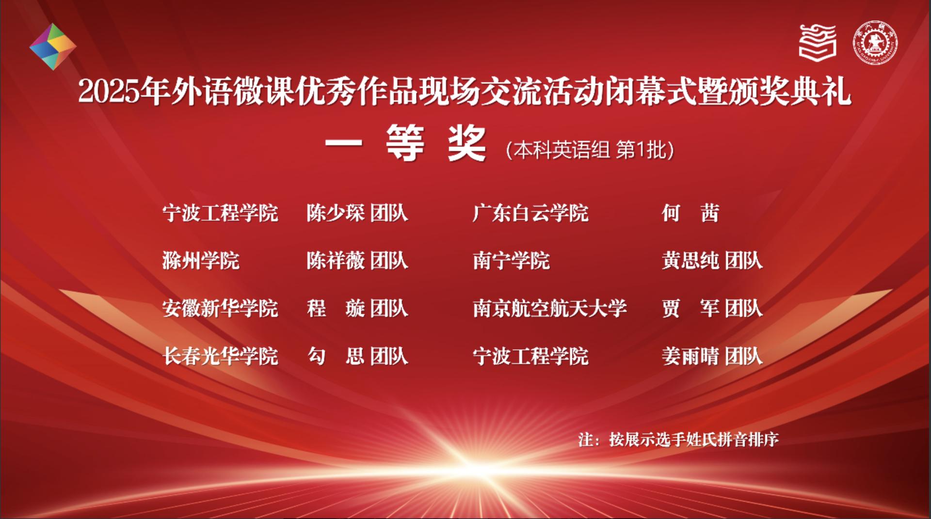 10月26日,由高等教育出版社主办的2025年外语微课优秀作品现场交流活动在陕西西安交通大学圆满落幕。万搏在线(中国)唯一官方网站所属南宁学院教师黄思纯、杨乐、谢立芳、宁丽玫团队凭借作品Travel Video Opening—Captivating Your Audiences in Seconds,从全国66件入围现场交流的优秀作品中脱颖而出,斩获全国一等奖。