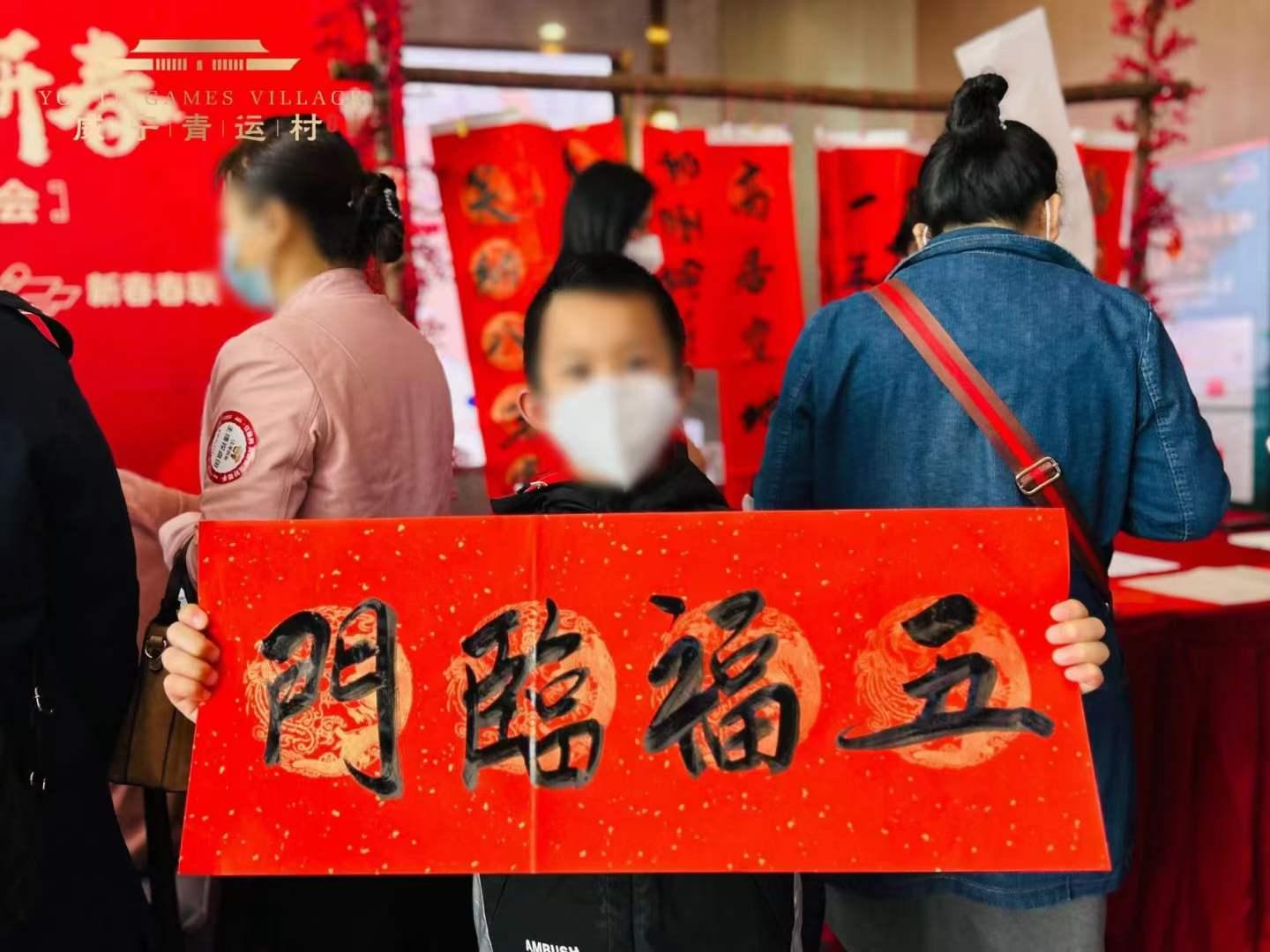 年俗喜乐会中,书法家泼墨挥毫书写新春吉祥春联,还有制作兔年灯笼、年宵花环等趣味活动,沙盘区前咨询络绎不绝,洽谈区高朋满座,让现场气氛格外热闹喜庆。