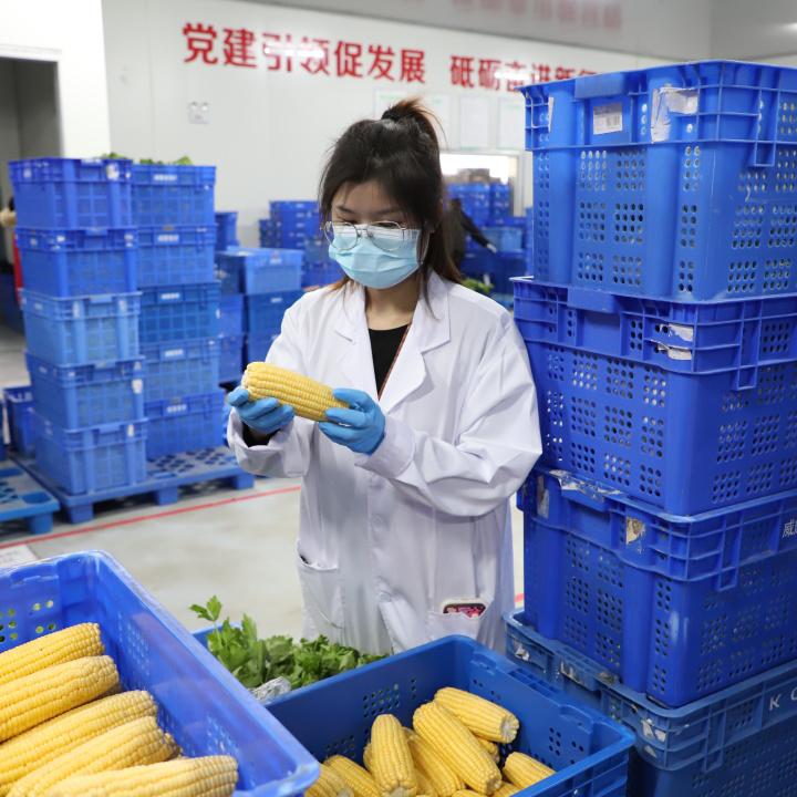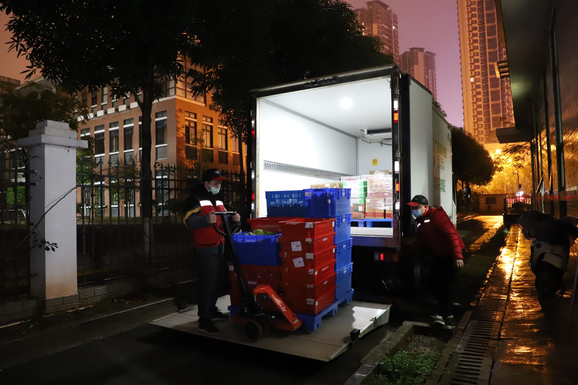 各基地分拣组将供应商运过来的食材一一分发到对应的学校