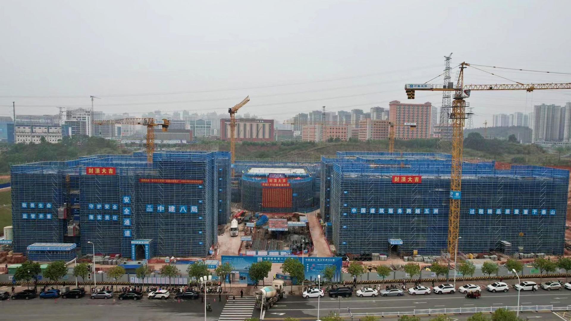 项目从破土动工到主体结构封顶,历时100余天。施工期间在各方努力下,克服工期紧、场地受阻等因素,强抓工期同时保证工程质量和施工安全,优质高效地完成了既定项目建设节点目标。