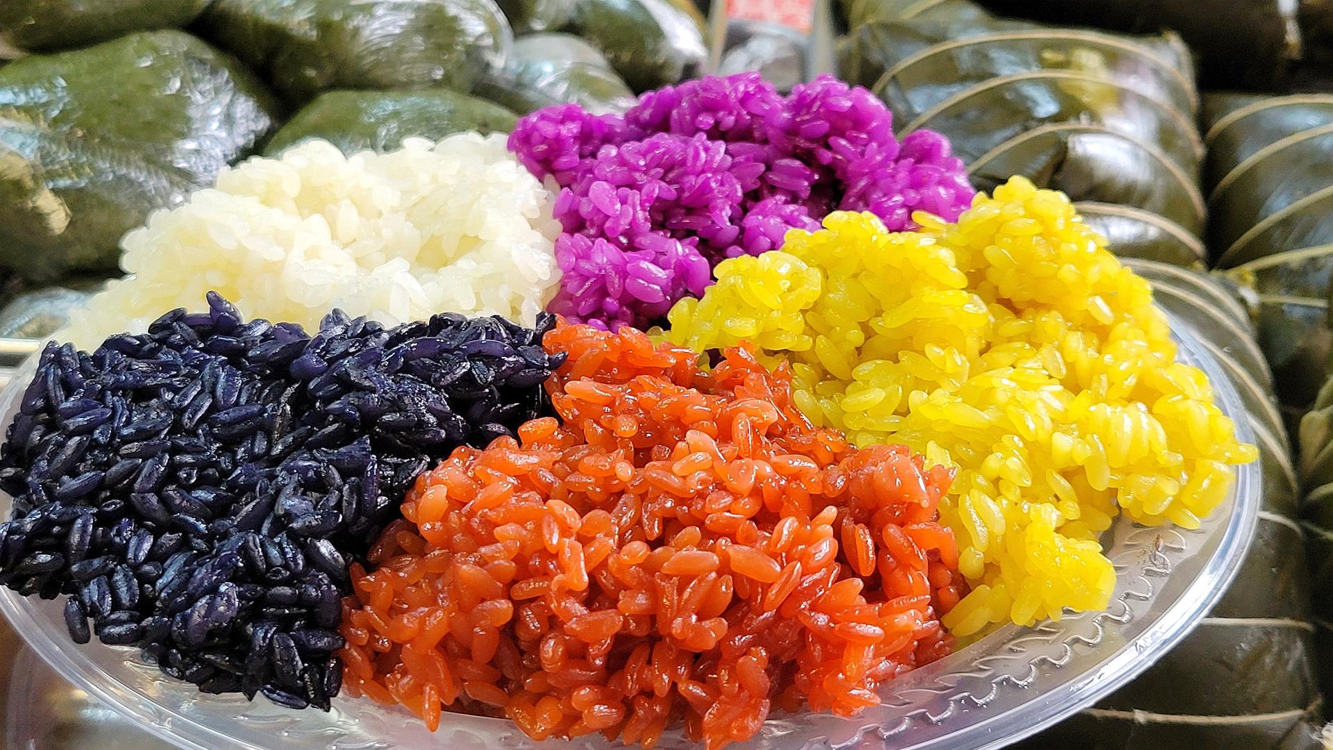 五色糯米饭作为壮族的特色美食,可谓家喻户晓,植物清香四溢扑鼻,五彩缤纷、晶莹剔透,让人垂涎欲滴。