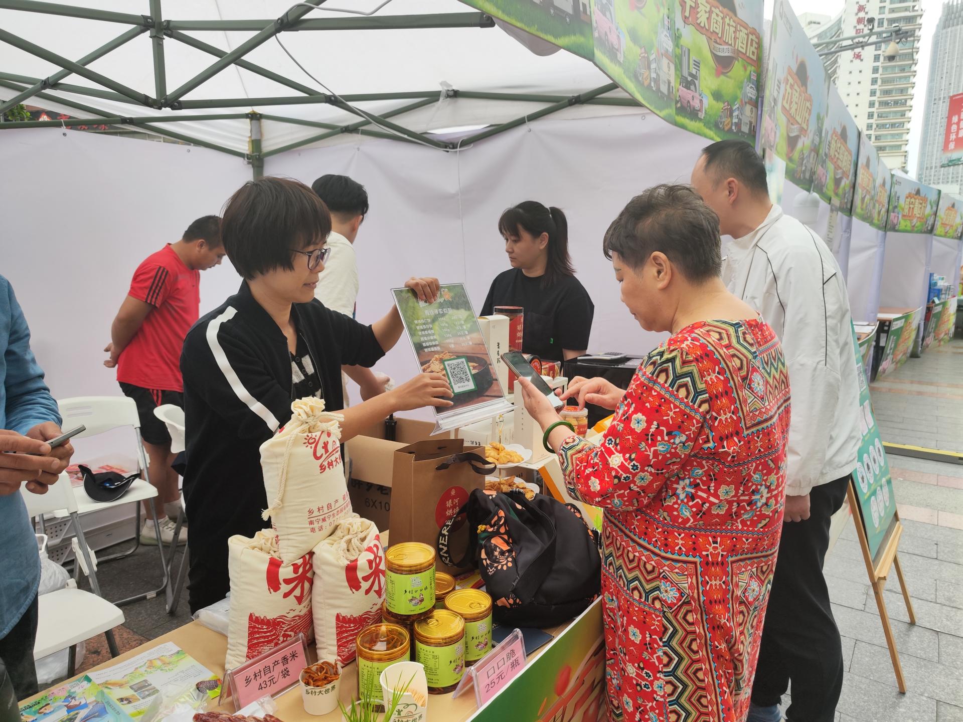 3月24至26日,位于南宁百货朝阳店前的联营市集吸引市民驻足品尝银河传统点心、乡村大世界的腊味饭,参与新华照相院晒照活动等,现场还展示了公司各门店新媒体账号,便于广大市民关注和了解更多活动资讯。