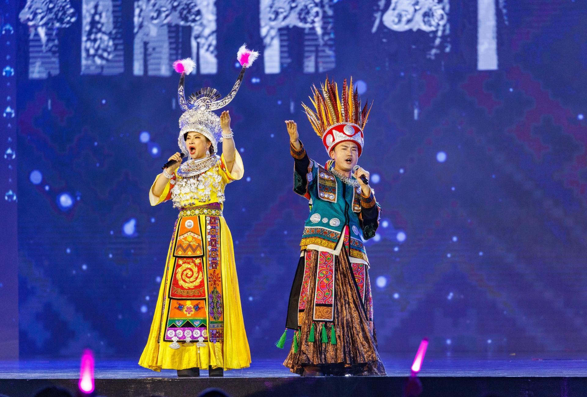 当晚的演出上,不仅有壮语歌曲《呗侬情深》、新民歌《连心歌》、京族民歌《洗贝歌》、云南罗罗拔四团队带来的民俗大秀《跳菜》等极具地域民族特色的演出,也有来自印度尼西亚、马来西亚、俄罗斯等国的歌者带来东盟乃至“一带一路”沿线国家的经典民歌。贵州游方组合的《对歌对到日落坡》,壮族民歌《天上星星伴月亮》等作品把传统艺术与现代表现手法完美融合,唱出了“新民歌”的无穷魅力;2022《中国好声音》全国总冠军梁玉莹、拥有逾四千万粉丝的歌手唐艺以及额尔古纳乐队等倾情献唱,吸引了更多年轻观众的瞩目;南宁市天桃实验学校的孩子们用清澈的嗓音唱出新时代八桂好少年的风范,赢得现场观众阵阵掌声。