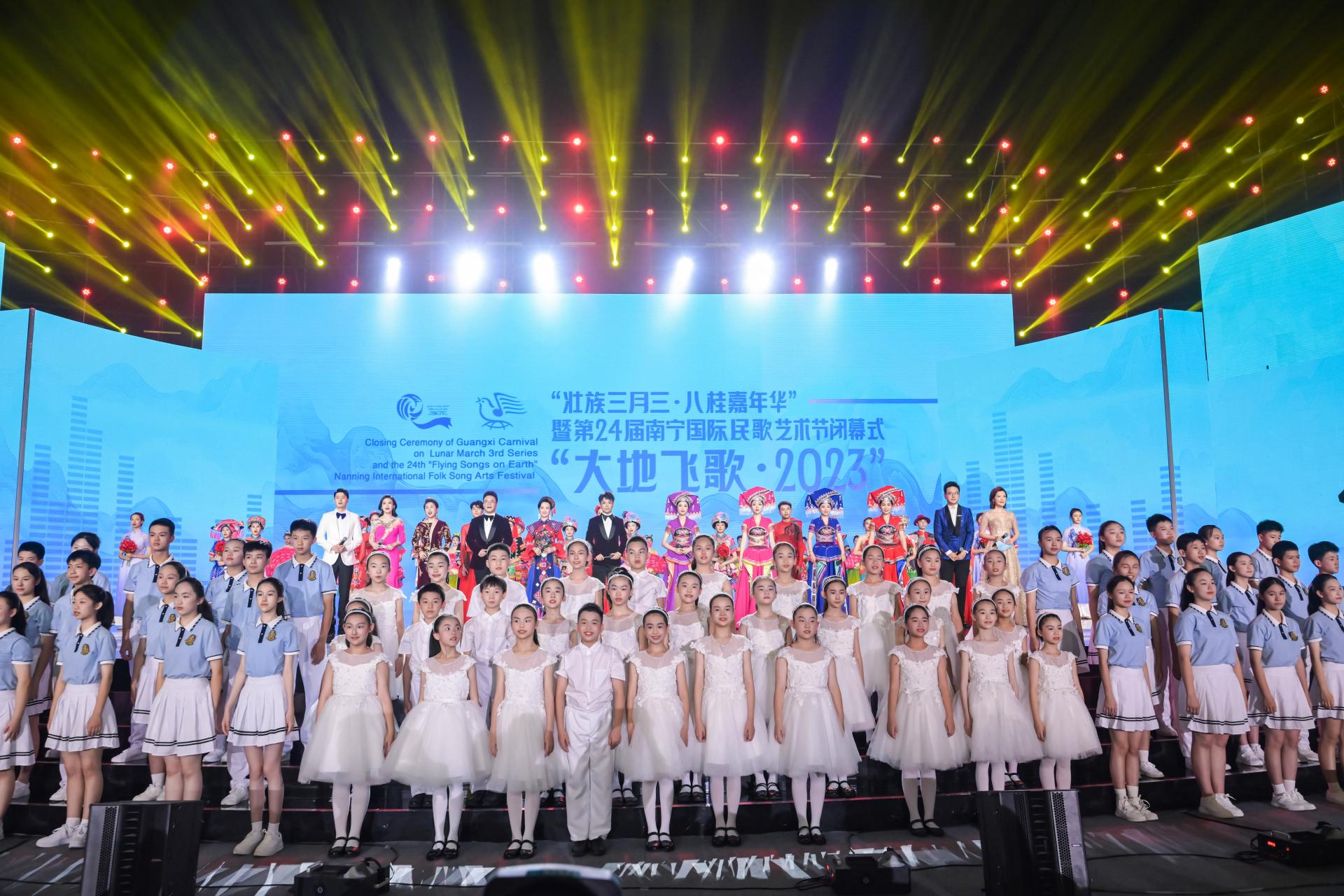 5月21日,“壮族三月三·八桂嘉年华”暨第24届南宁国际民歌艺术节闭幕式“大地飞歌·2023”(以下简称“大地飞歌·2023”)在广西体育中心体育馆精彩上演,于5月22日通过电视、广播、网络等平台播出。本届南宁国际民歌艺术节首次与“三月三”进行创新融合,主题更突出,内容更丰富,形式更新潮,更展民歌风采,更具国际风范,更显时尚风韵,全力打造一场思想精深、艺术精湛、内容精美、效果精彩的文化艺术盛宴。