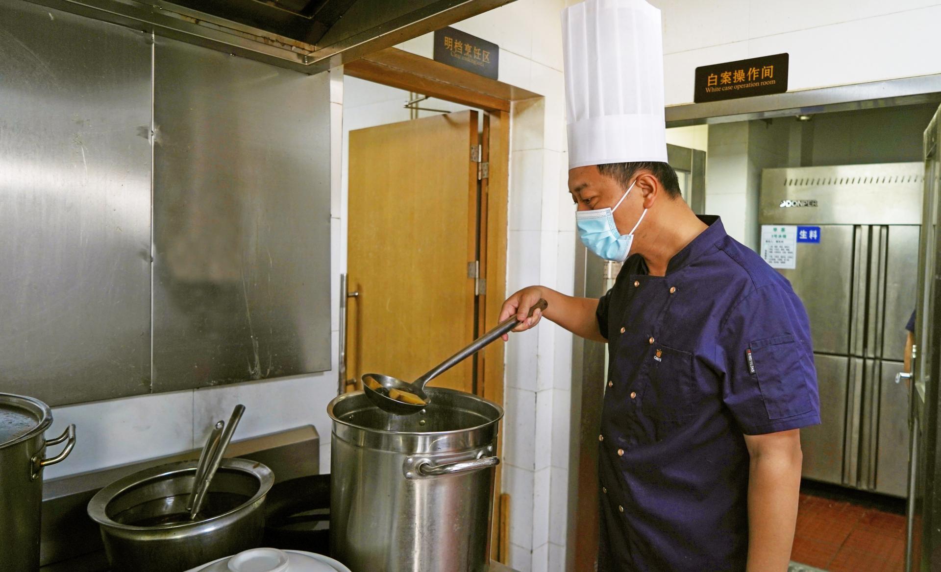 邕城凉茶第三代传承人黄冲在煮制凉茶
