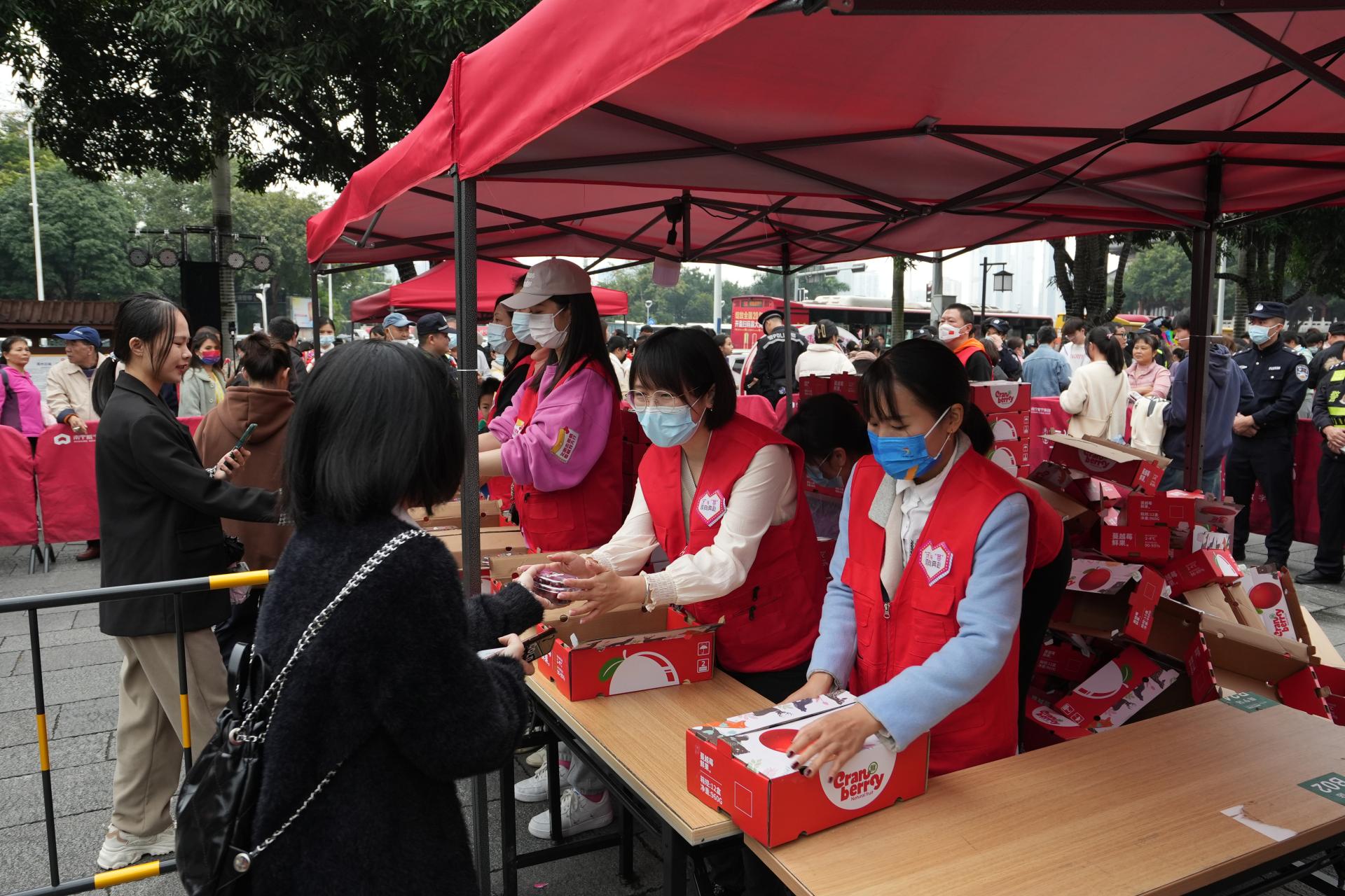 志愿者开展蔓越莓发放工作