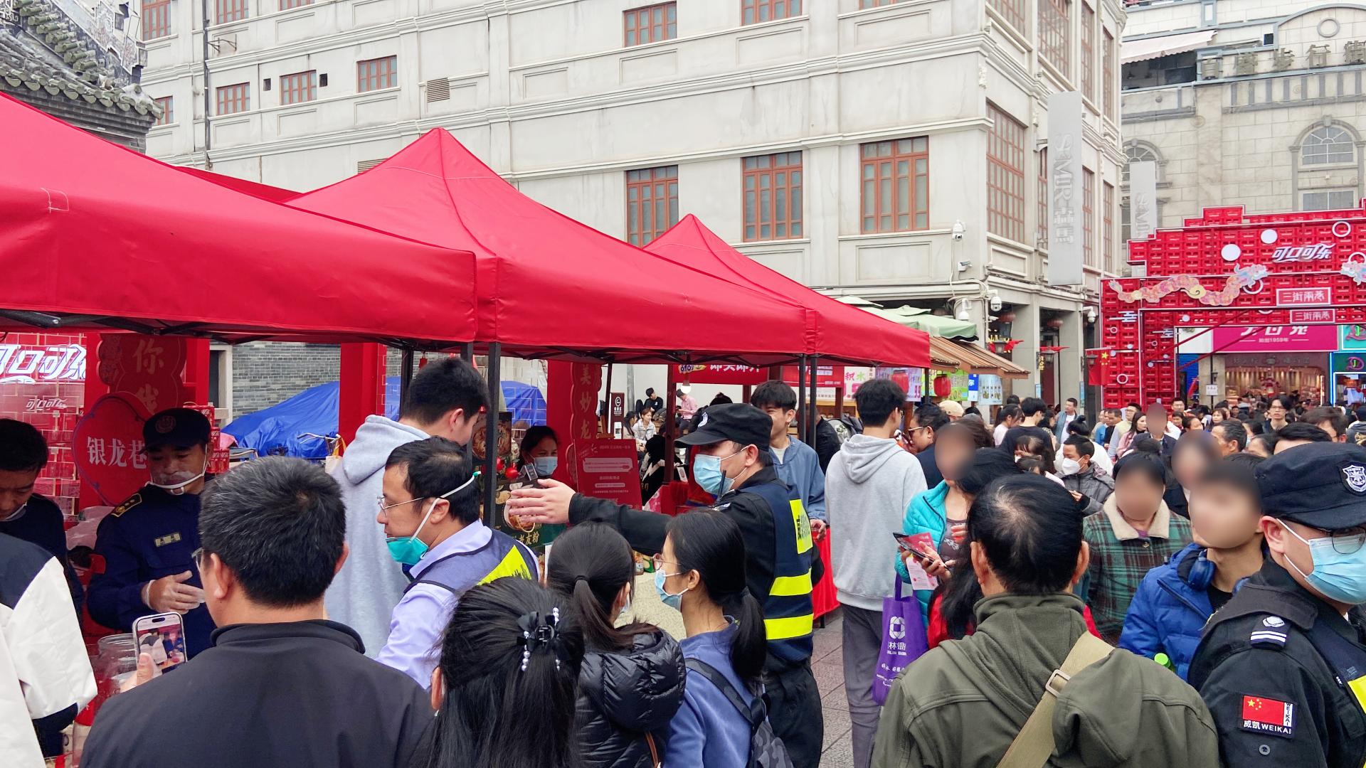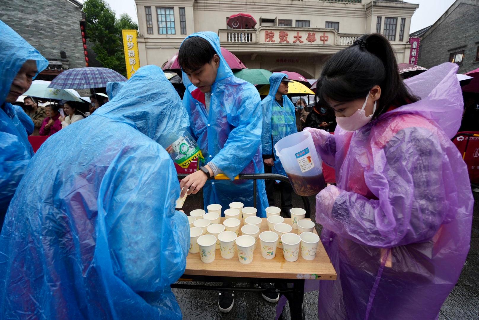 雨水浇不灭南宁市民的热情。在1月11日—1月14日的四天派发活动时间里,大批市民抵达邕州古城·三街两巷,高峰期现场客流量高达近1.5万人次,车流量近3千辆次,为了确保邕州古城·三街两巷发放现场安全到位、氛围布置到位,威邕城市运营集团组织人手通宵完成活动物料进场及布置工作;面对强降雨天气,公司迅速作出反应,组织志愿者为市民游客提供“爱心雨衣”,第一时间熬煮暖心姜茶,通过小小善举,将暖意传递到每个人心底,受到市民群众一致夸赞;在派发活动高峰期,针对可预见的客流激增态势,公司组织精干人防覆盖重要点位,增强巡防频次、密度,严防拥挤、推搡、踩踏、走散等意外事件发生,确保发放现场安全有序进行。此外,公司还为第一次见到蔓越莓的南宁市民准备了现场试吃点,让市民群众了解了蔓越莓多样化的食用方法,并解锁蔓越莓酸嘢的南宁做法。