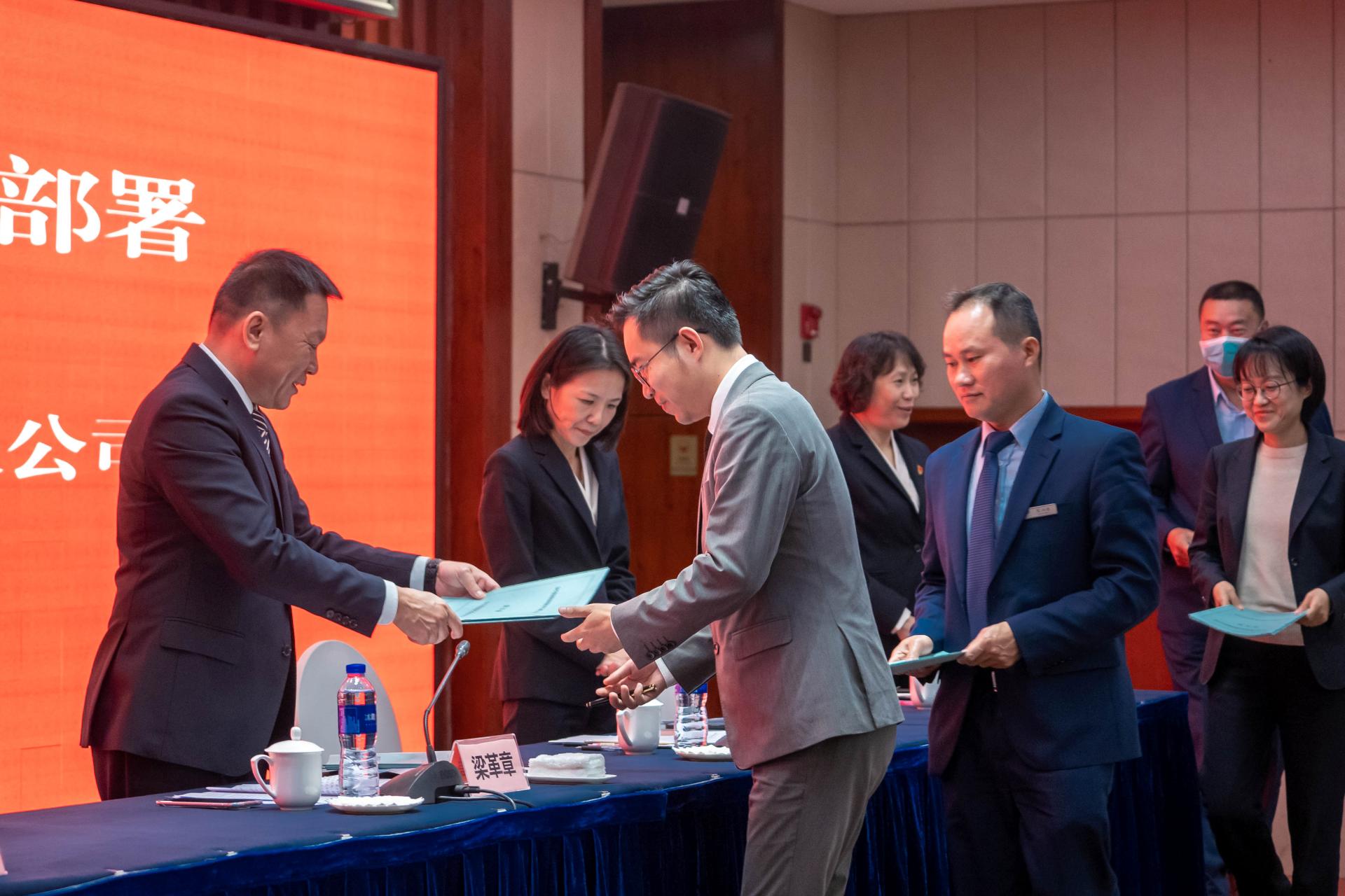 各部门负责人向执行董事、总经理梁革章递交2024年安全生产目标管理责任书