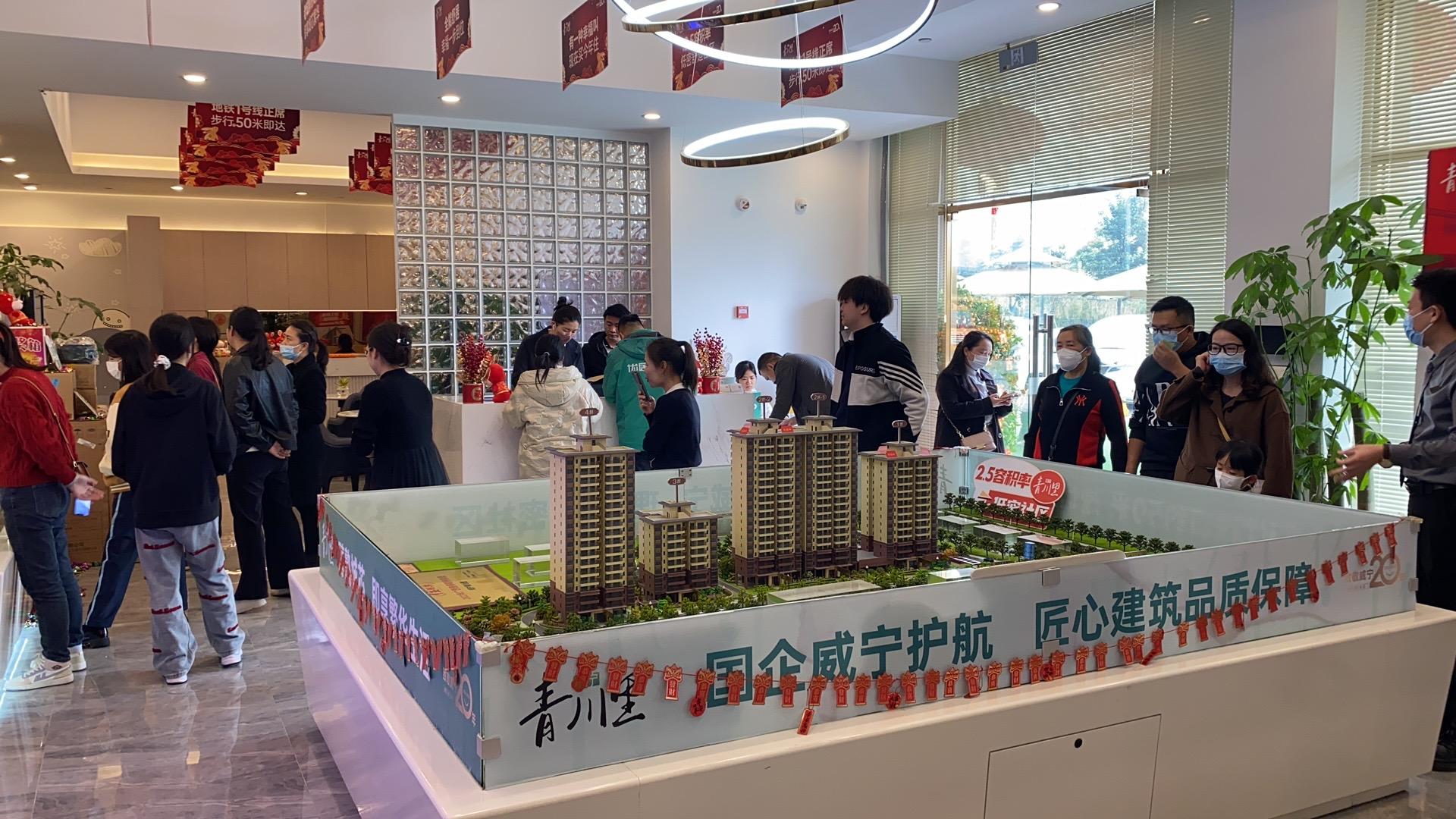 在万搏在线(中国)唯一官方网站青运村沙盘前置业顾问给客户作讲解