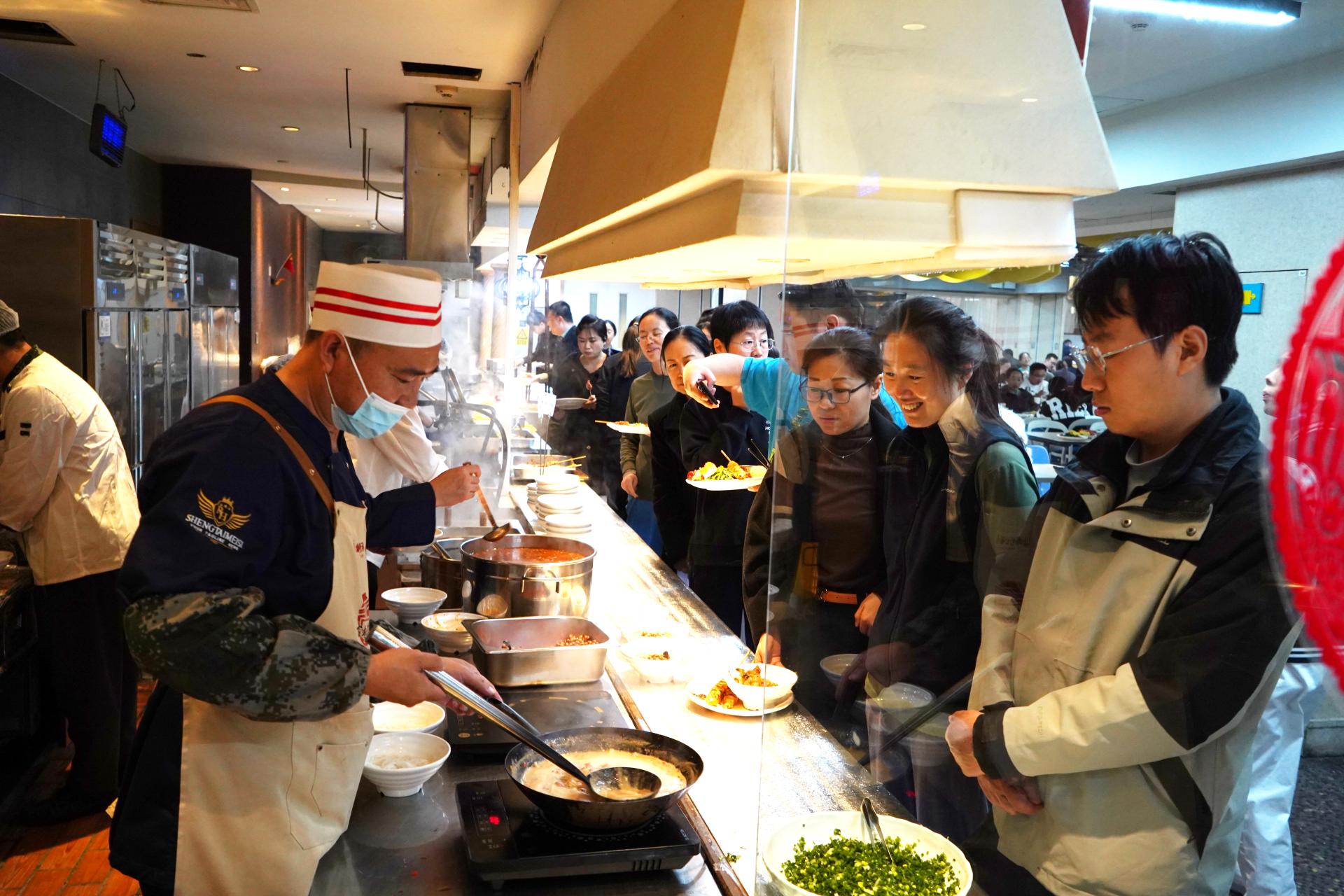 授课期间,银河公司团队与医院服务保障中心团队共同合作开展“老友传情——南宁老友粉品鉴活动”,通过新鲜现做形式,在医院1、2号工作餐厅烹制老友干捞粉、老友牛肉汤粉,同时因地制宜用餐厅特色的面食,烹制出热辣爽口的老友干捞面、老友牛肉汤面,吸引现场就餐的官兵、职工纷纷排队品尝。在北京入冬之际,为医院官兵、职工带来一场香辣浓香的广西非遗美食体验。