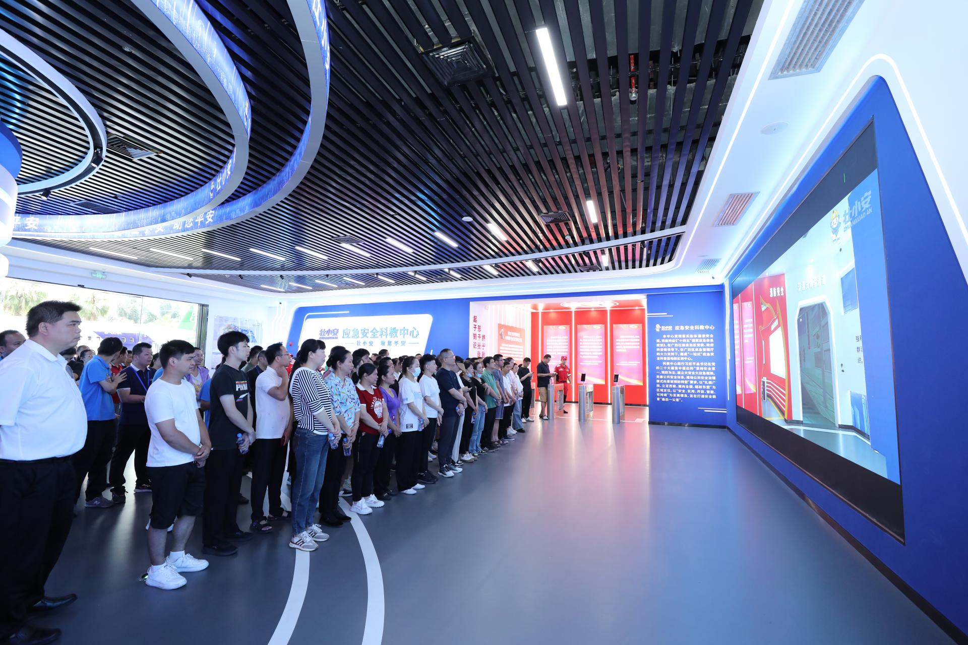 “安全生产月”期间,公司组织员工约240人到广西壮小安应急安全科教中心开展形式多样、内容丰富的安全生产科教活动,以《深入学习贯彻习近平关于应急管理的重要论述》一书为指引,结合科教中心的沉浸式体验、互动式体验,现场通过车辆碰撞、落水,地震躲避、台风侵袭体验;消防安全、用电安全、公共安全知识讲解等方式让员工提升了安全防范意识和自我保护技能水平。