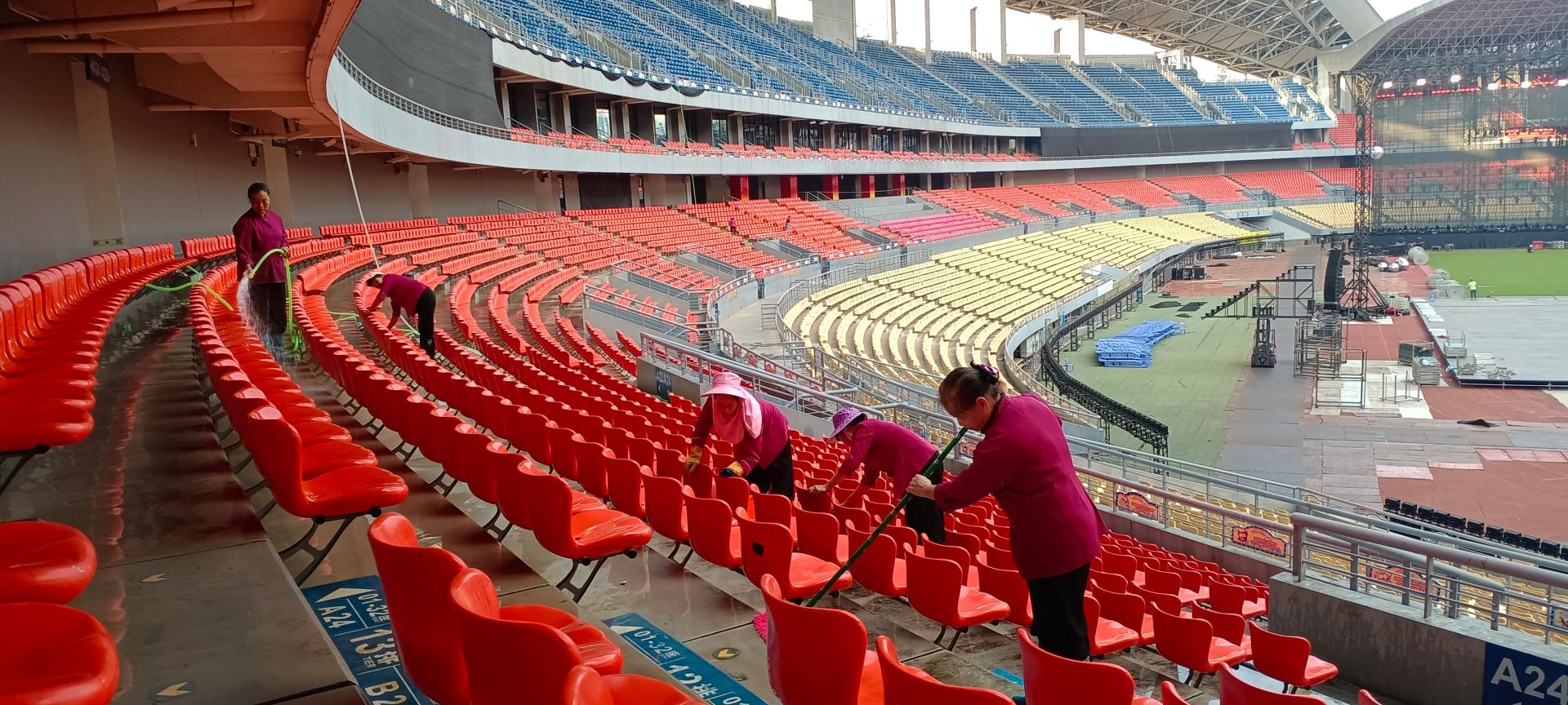 开展主体育场座椅清洁工作