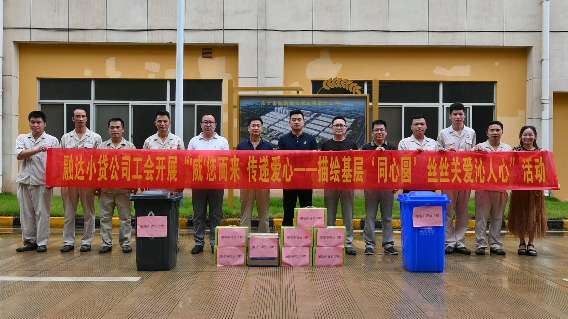 活动现场,融达小贷公司党支部还联合公司工会开展“描绘基层‘同心圆’,丝丝关爱沁人心”活动,慰问储备粮公司五象粮库的一线工人、退伍军人代表,发放一批清凉饮品、防疫用品及垃圾分类物资等慰问品,进一步强化了工会之间的合作交流,也营造了拥军优属、拥政爱民的良好社会氛围,开启了深化党建共建工作新篇章。