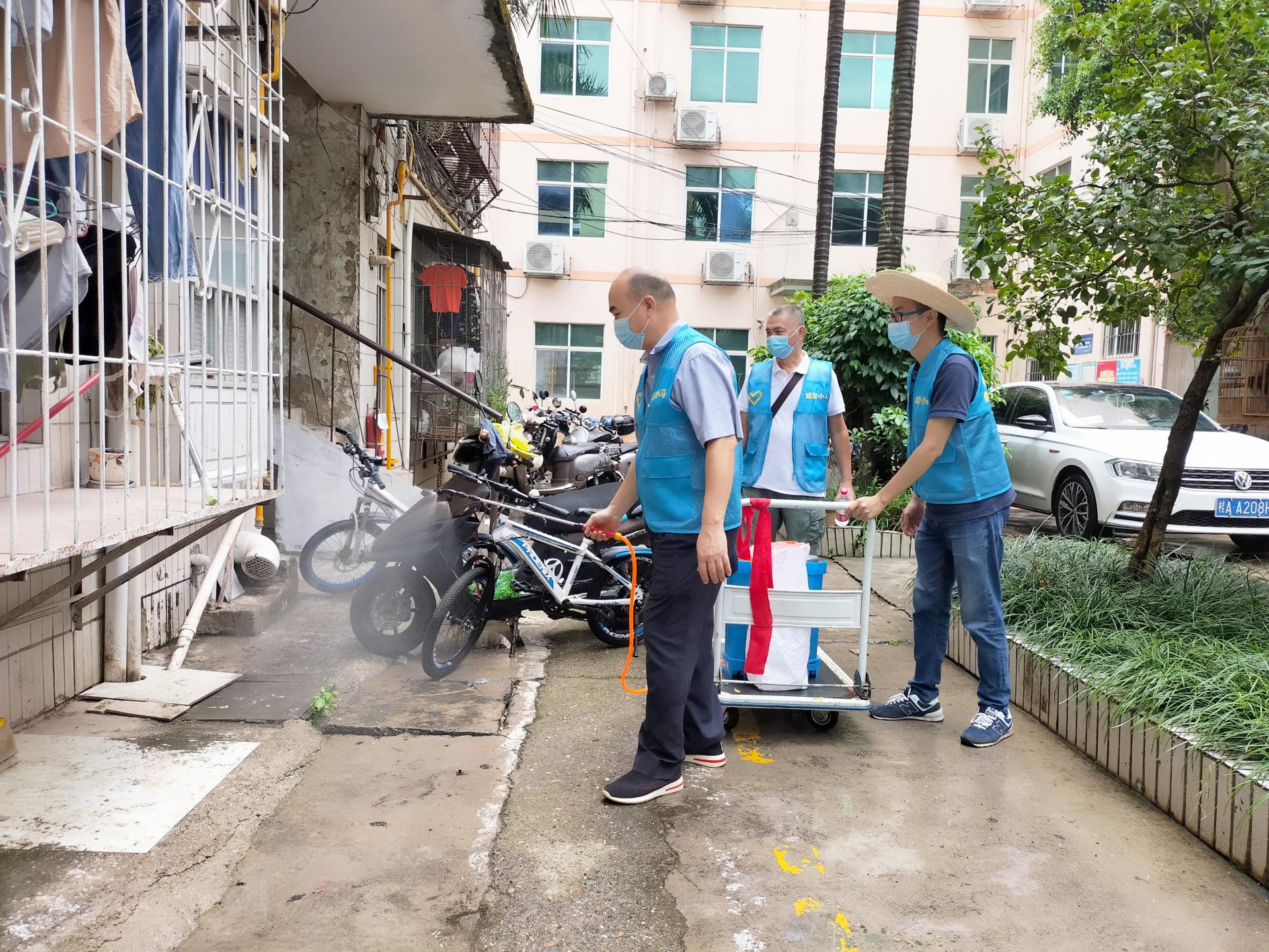 为积极响应南宁市创建全国文明典范城市、迎接国家卫生城市复审工作的号召,创建垃圾分类文明城市,深化生活垃圾分类理念,激励党员带头亮身份、践承诺、做表率,争做创城创卫推进者,积极鼓励引导居民群众参与到垃圾分类与环境整治活动中来,共同打造清洁、有序、优美的社区环境,8月18日上午,威润公司组织“威资小马”志愿服务队联合北湖街道秀湖社区深入北湖北路43号生活小区开展创城创卫、美化社区志愿服务活动,重点开展创城创卫工作、宣传生活垃圾分类知识、在小区公共场所实施全面消杀、向小区住户发放灭四害药物。