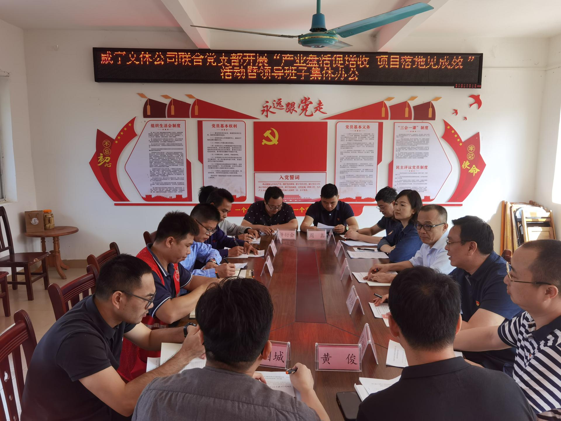 在合源村村委会议室,刘炽雄对第一书记欧世松驻村以来为村集体产业发展打下的基础和为乡村振兴工作扎下的根基予以肯定。同时,也对下一步的产业振兴项目提出了殷切希望,要求要在充分巩固已有成果的基础上,利用好后盾单位的资源优势,挖潜创效,以盘活村集体闲置资产资源,发展壮大生态鸡养殖、酸笋加工等特色产业为重要抓手,以春节等重大节假日节点为契机,借力消费帮扶打造农产品供应链,助推实现农产品产销两旺,切实让项目落地生金,让村民的“钱袋子”鼓起来,加速乡村振兴。