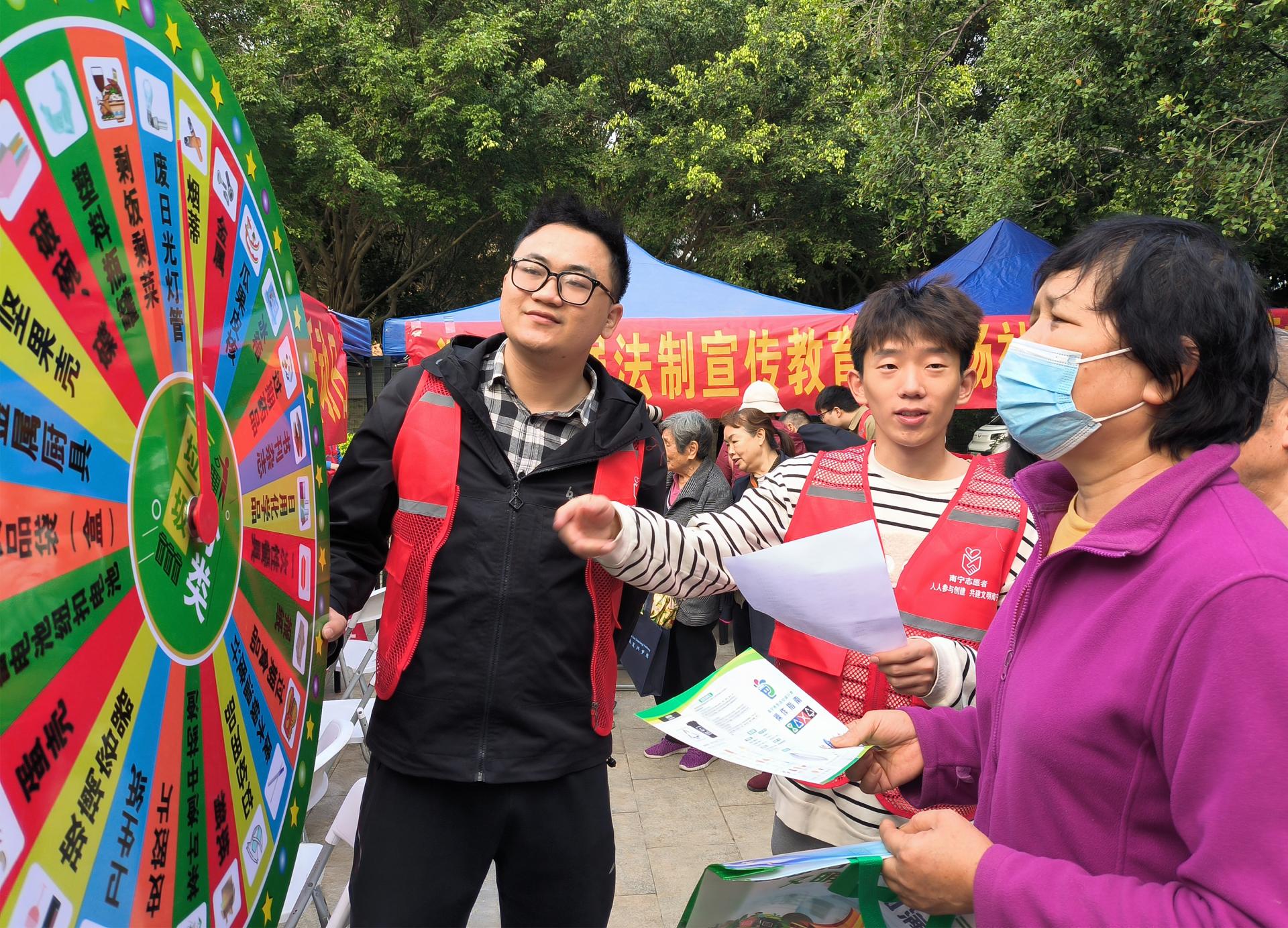 “椰子壳不易腐烂,属于其他垃圾。”活动现场,团员青年志愿者向市民群众发放生活垃圾分类宣传资料,讲解南宁市生活垃圾分类及管理的新要求、新标准,解答生活中常见的垃圾分类误区,并开展垃圾分类小游戏进一步普及分类知识,全面提升生活垃圾分类的普及率、知晓率及投放准确率。