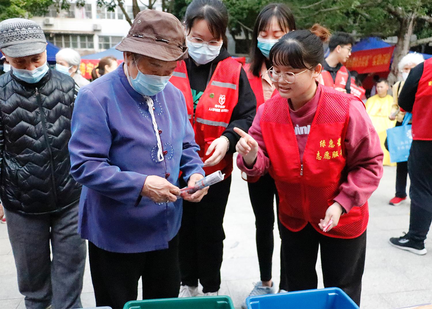 团员青年志愿者向市民讲解生活垃圾分类知识
