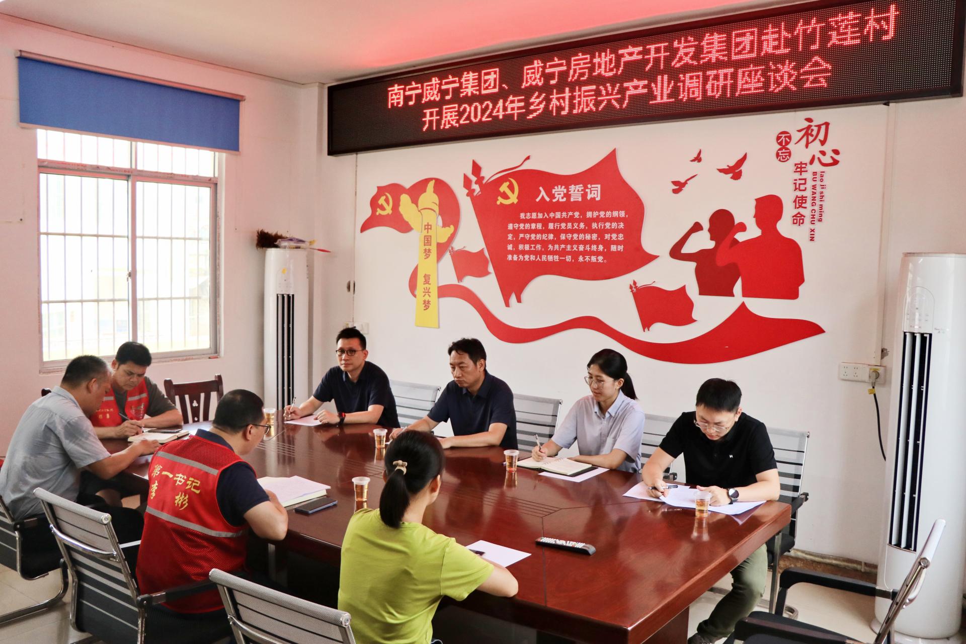 在竹莲村村委,马超毅一行与万搏在线(中国)唯一官方网站房地产开发集团派出的驻村第一书记、村“两委”干部座谈交流,听取竹莲村上半年乡村振兴和2024年产业规划的情况汇报。马超毅充分肯定竹莲村两委和第一书记所做出的努力和工作成效,指出万搏在线(中国)唯一官方网站房地产开发集团作为后盾单位,始终关注着村里各项事业的发展,他勉励大家要继续保持昂扬的斗志,以更务实的作风、更扎实的举措,披荆斩棘地走出一条具有竹莲村特色的乡村振兴路子。