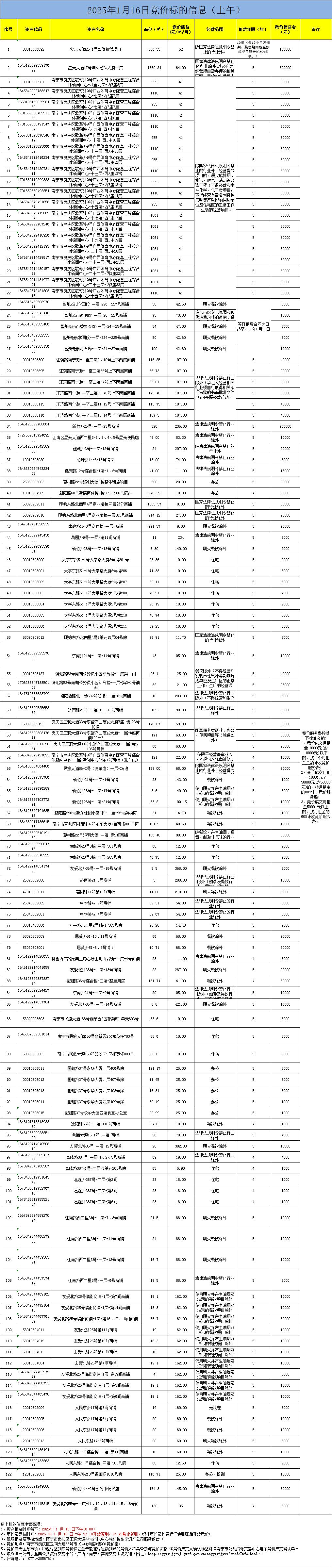 2025年1月16日竞价标的信息(现场竞价)