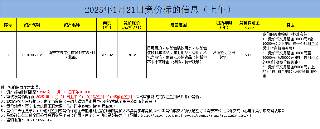 2025年1月21日竞价标的信息(现场竞价)