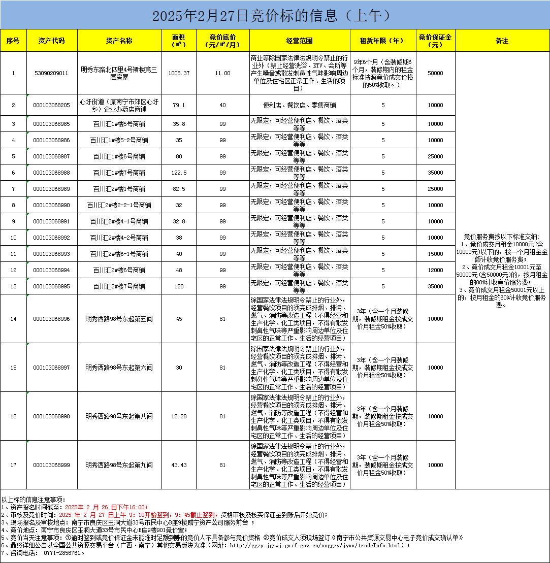 2025年2月27日竞价标的信息(现场竞价)