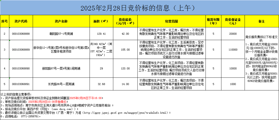 2025年2月28日竞价标的信息(线上竞价)