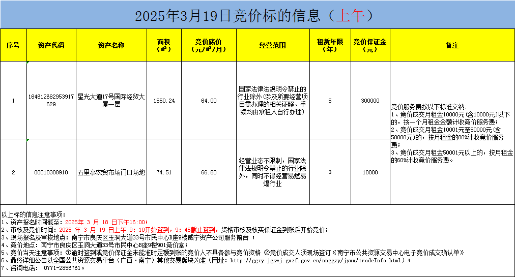 2025年3月19日竞价标的信息(现场竞价)