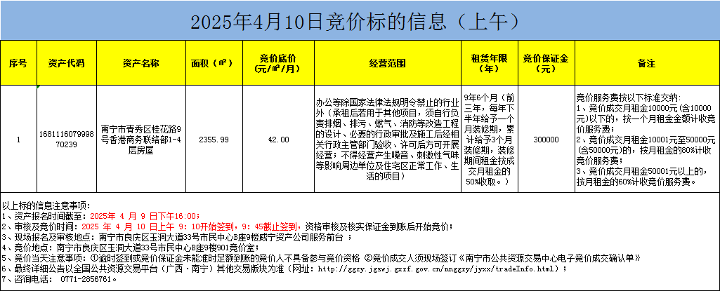 2025年4月20日竞价标的信息(上午)