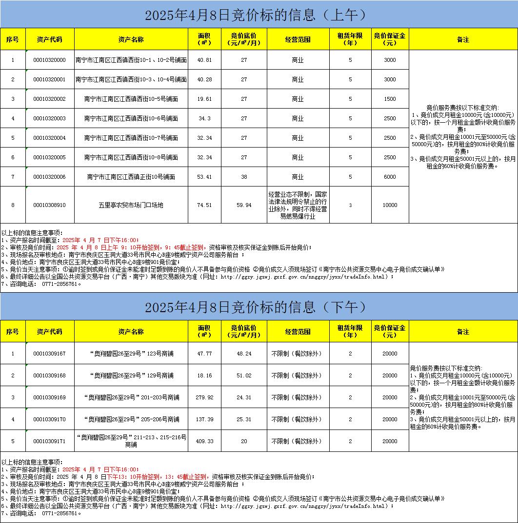 2025年4月8日竞价标的信息(现场竞价)