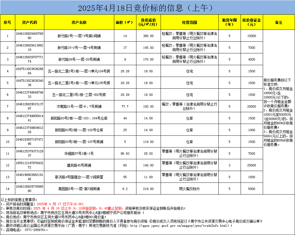 2025年4月18日竞价标的信息(现场竞价)