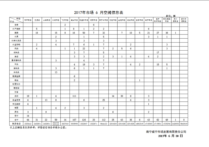 2017年市场6月空摊信息表