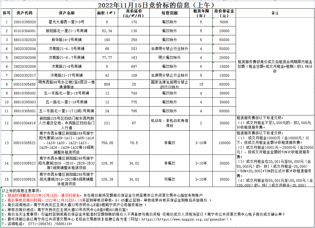 2022年11月15日竞价标的信息