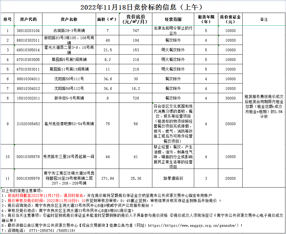 2022年11月18日竞价标的信息