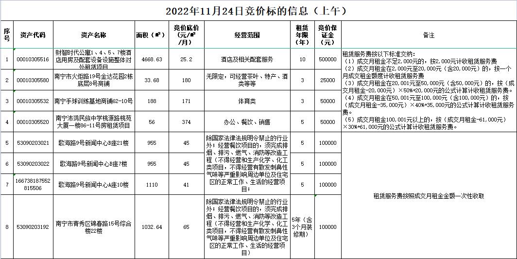 2022年11月24日竞价标的信息