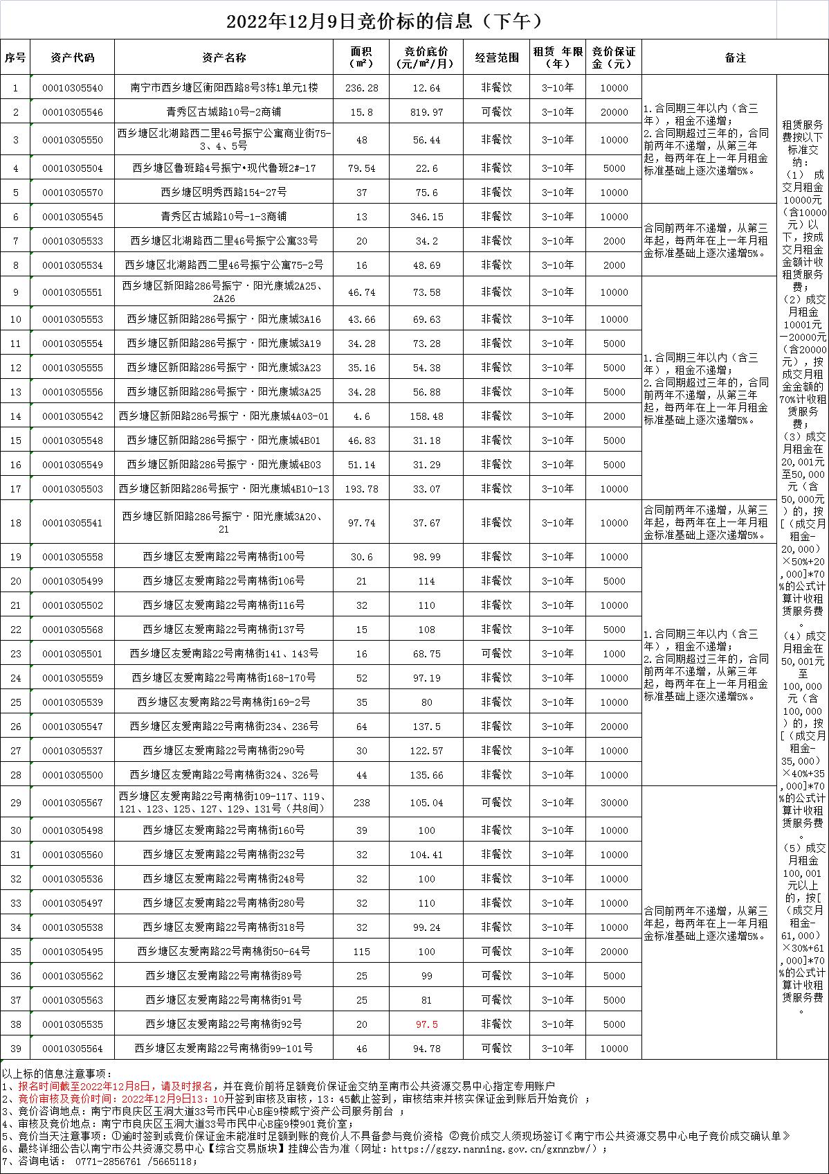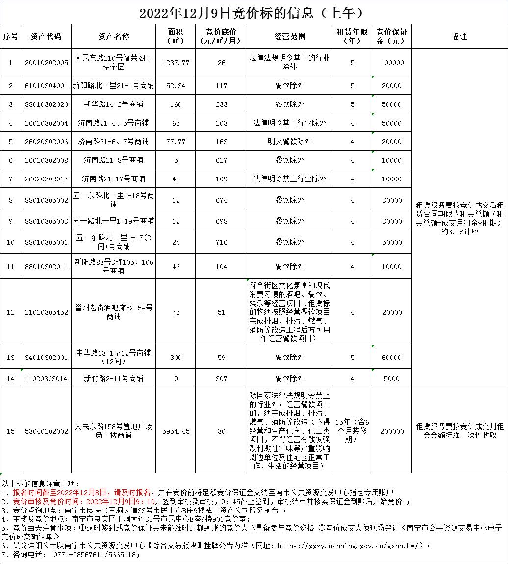 2022年12月9日竞价标的信息