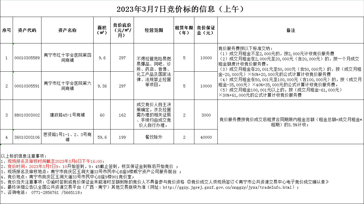 2023年3月7日竞价标的信息