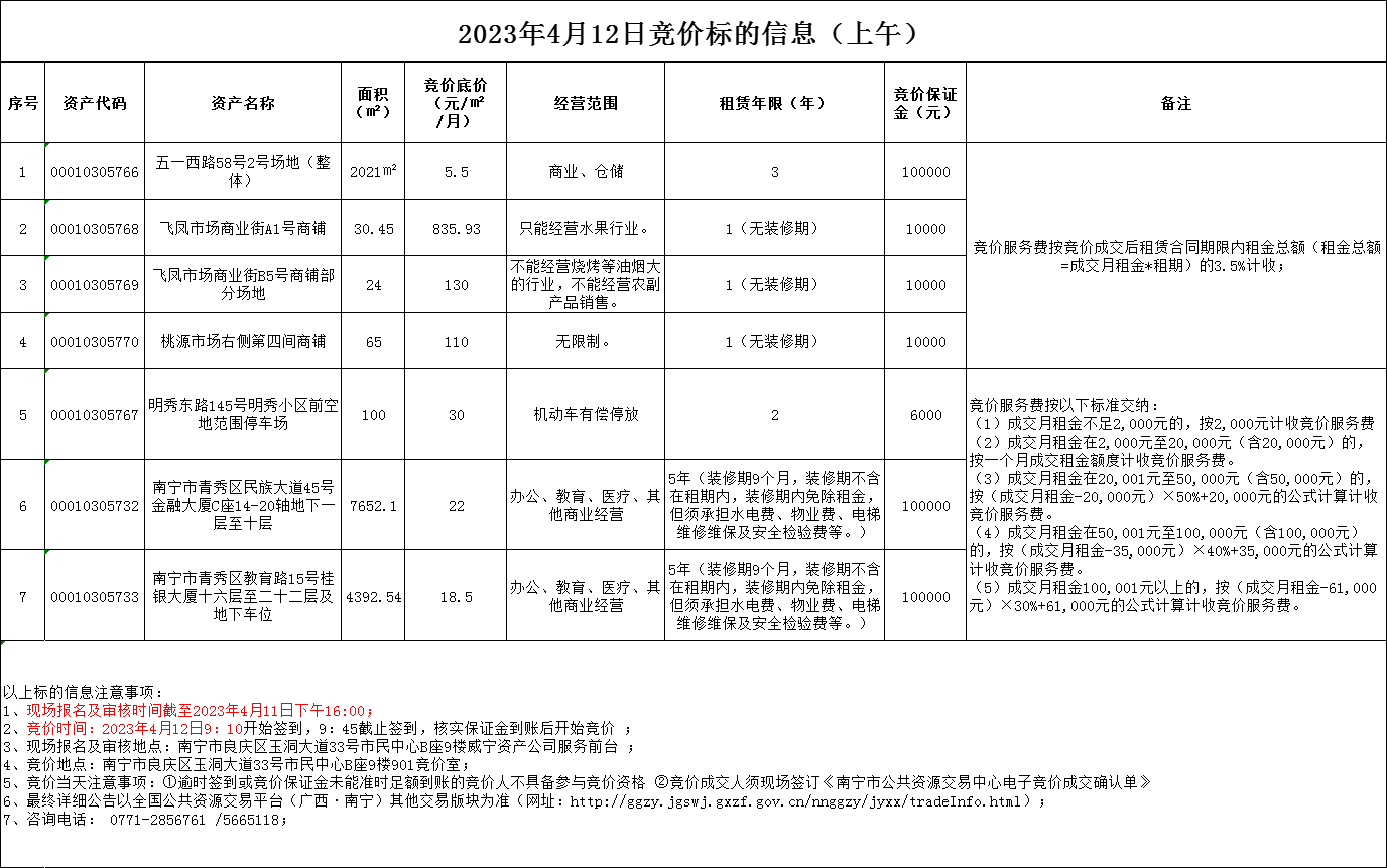 2023年4月12日竞价标的信息