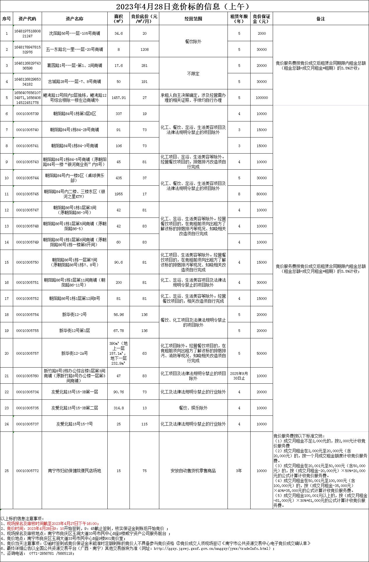 2023年4月28日竞价标的信息