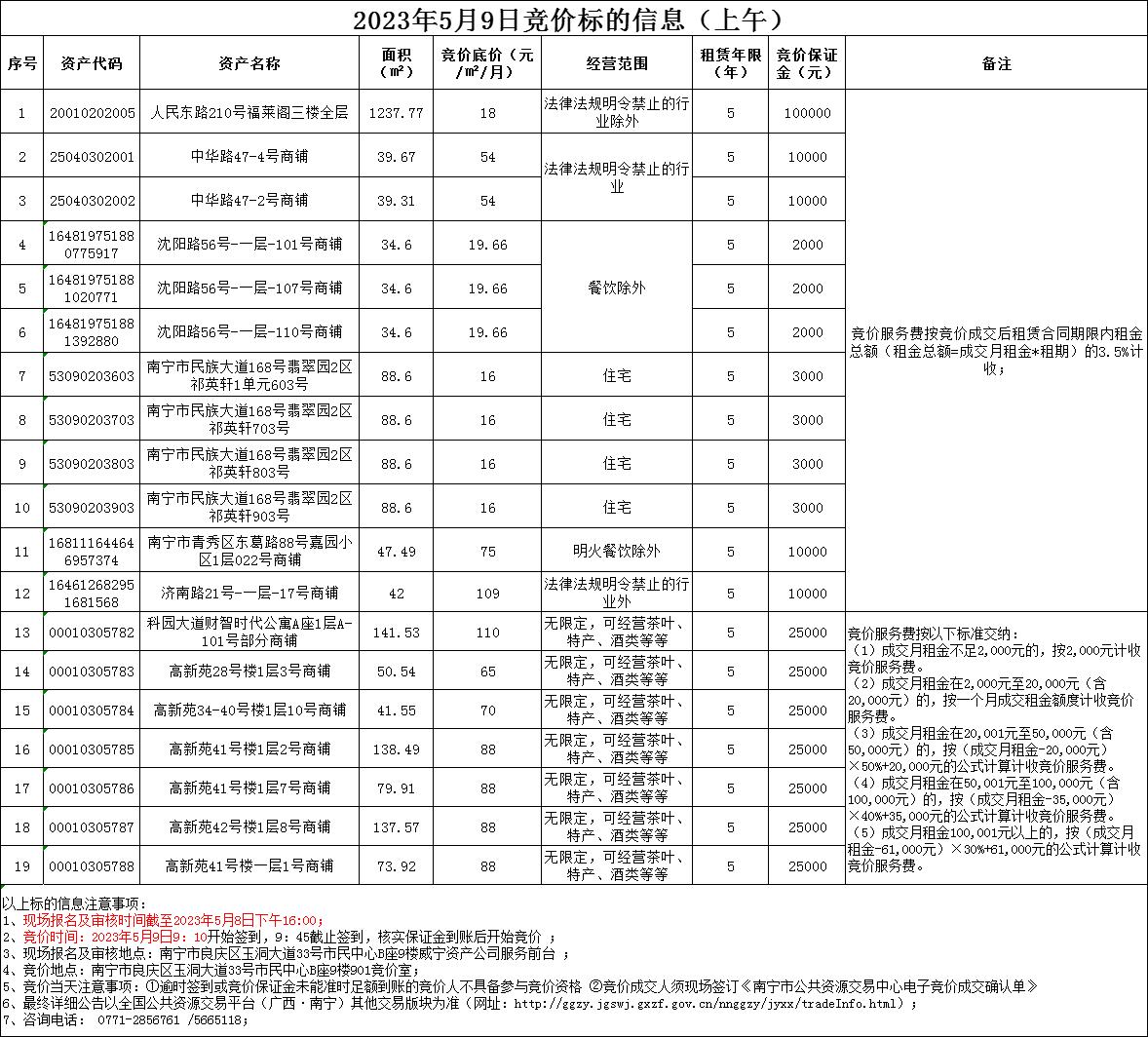 2023年5月9日竞价标的信息