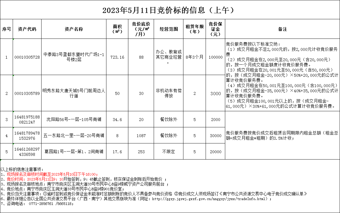 2023年5月11日竞价标的信息