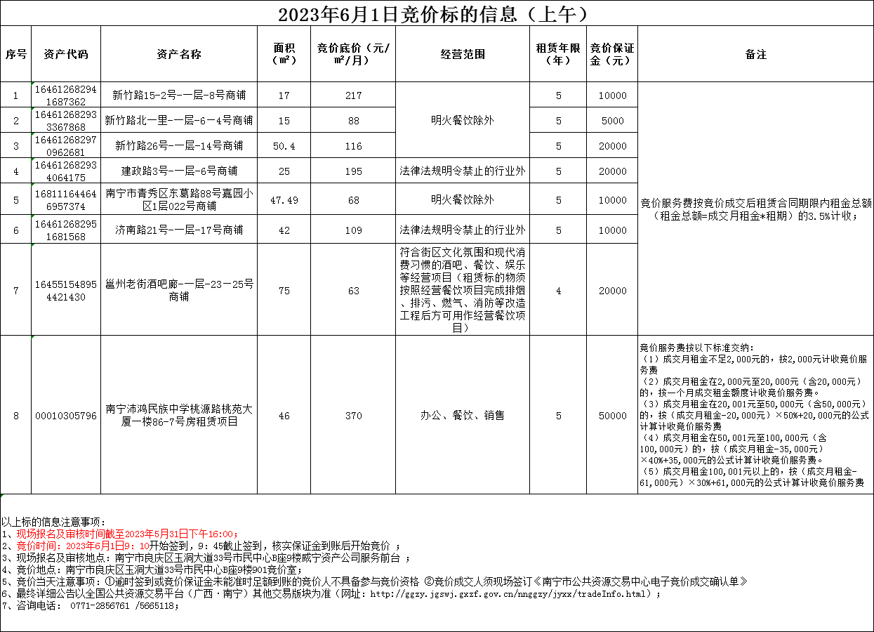 2023年6月1日竞价标的信息