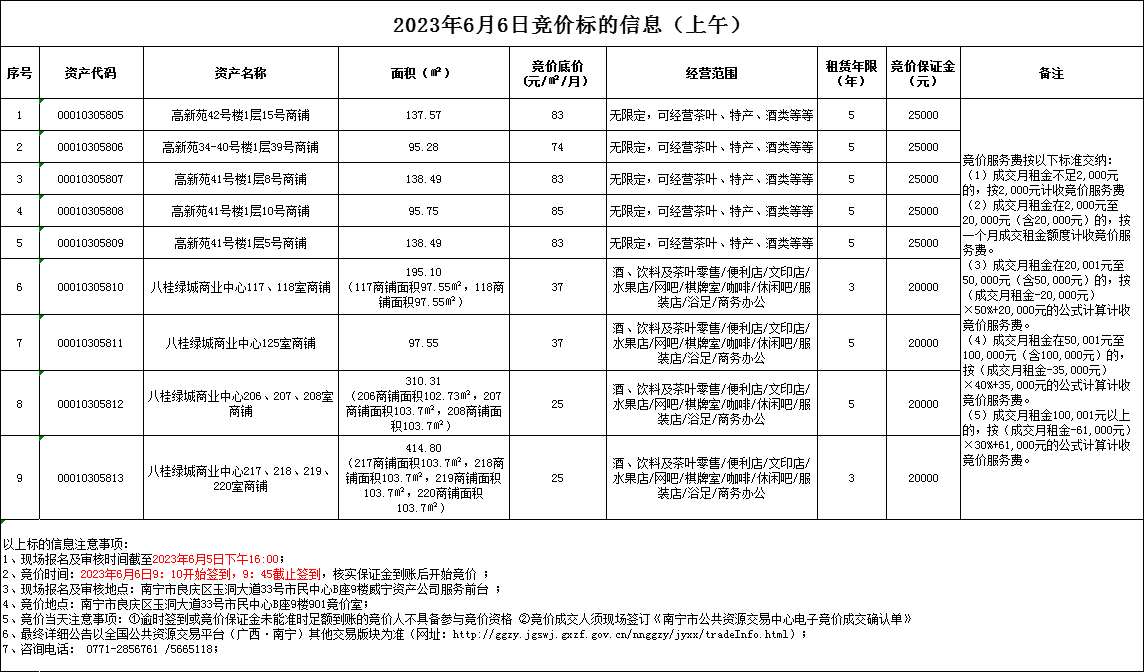 2023年6月6日竞价标的信息